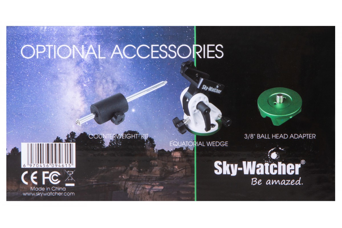 Монтировка Sky-Watcher Star Adventurer 2i – очень компактная, а значит, может использоваться только с негабаритными и нетяжелыми оптическими трубами. Не превышайте максимально допустимой нагрузки, чтобы не сломать ее. Крепление к треноге – стандартное винтовое 3/8", при наличии адаптера можно использовать и штативы 1/4".