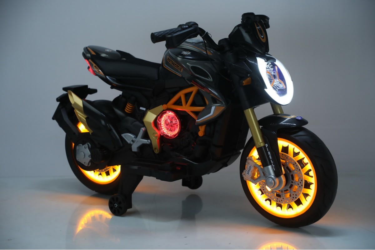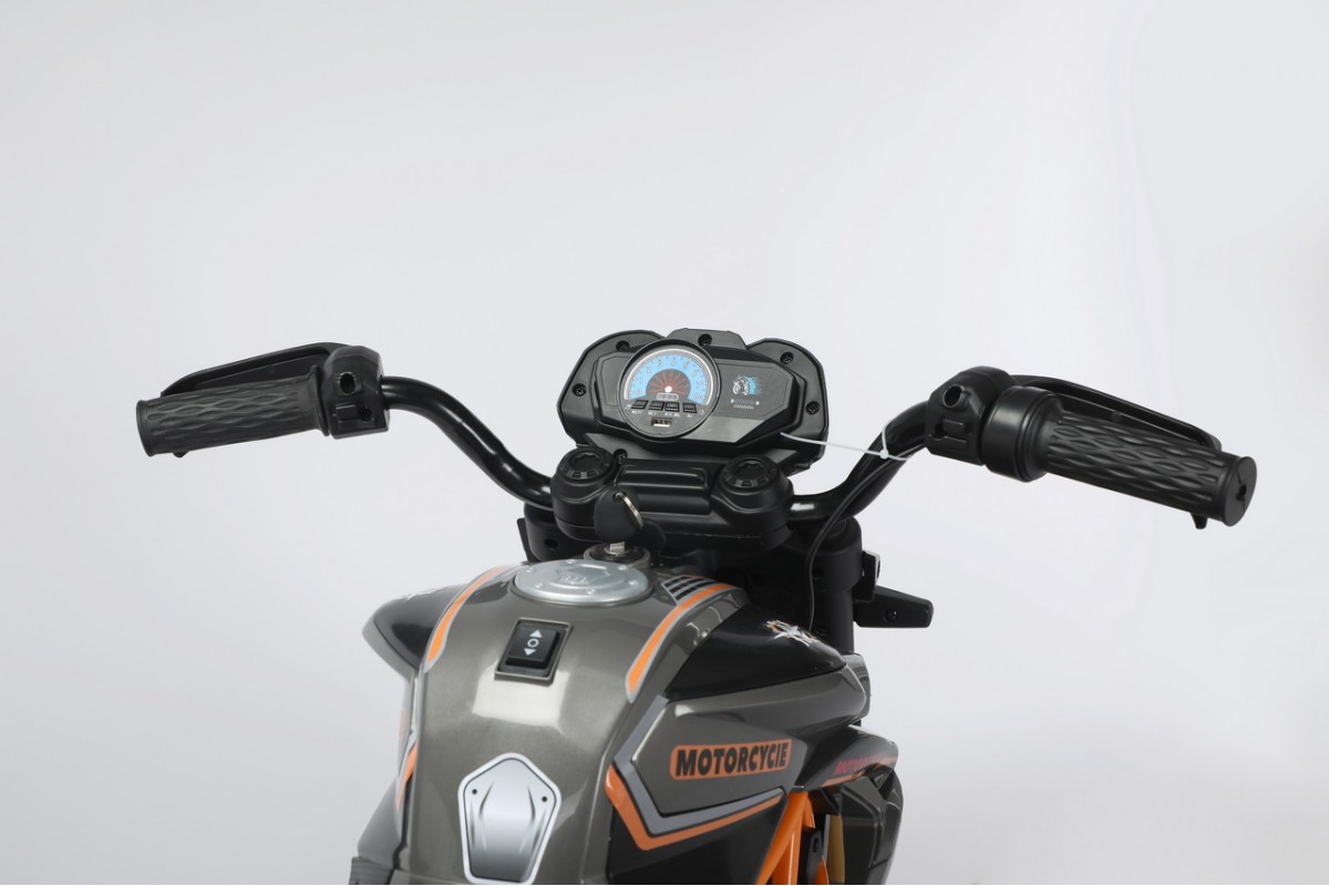 > для детей от 3 лет - полностью резиновые колеса EVA, максимальная нагрузка 30 кг - аккумулятор 12V/10Ah (вход для зарядного устройства под сиденьем) - два двигателя: 2x35W, привод на заднее колесо - максимальная скорость 7 км/ч, две скорости в перед, одна скорость движения назад - заводится c ключа - газ с ручки на руле - педаль тормоза - есть подножка - нет пульта ДУ - комбинированное сиденье - удобный руль музыкальные эффекты на корпусе - индикатор заряда батареи - вход для USB - светодиодные огни фар - подсветка колёс -в комплекте: аккумулятор, зарядное устройство, подставные колесики - гарантия: 6 месяцев
