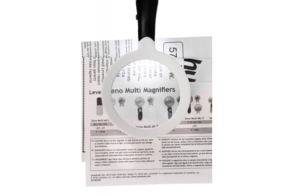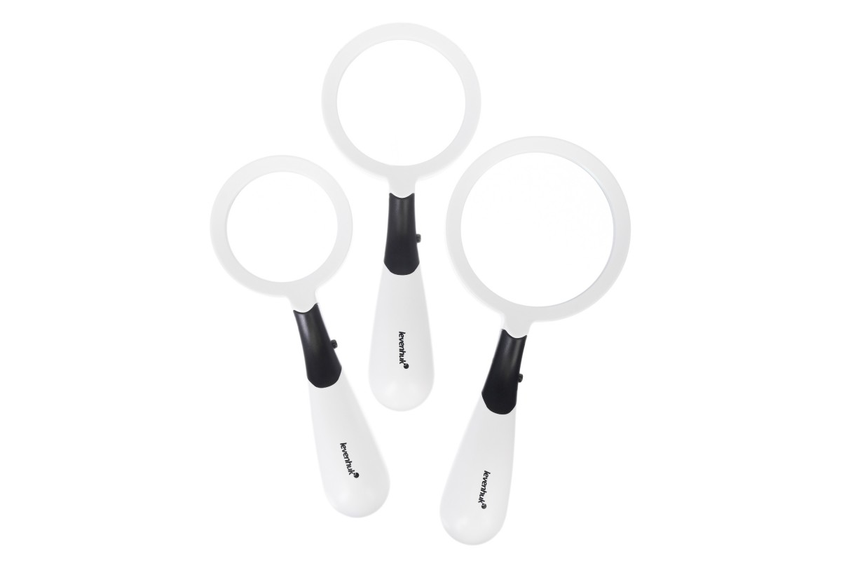 Levenhuk Zeno Multi ML13 – три классические просмотровые лупы на ручке. Набор состоит из трех отдельных луп разного диаметра, дающих разное увеличение. Каждая лупа снабжена подсветкой, состоящей из двух светодиодов.