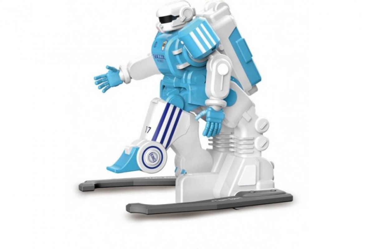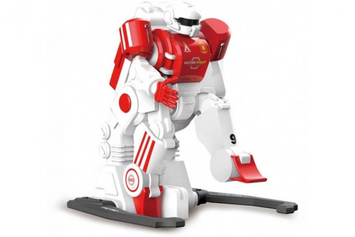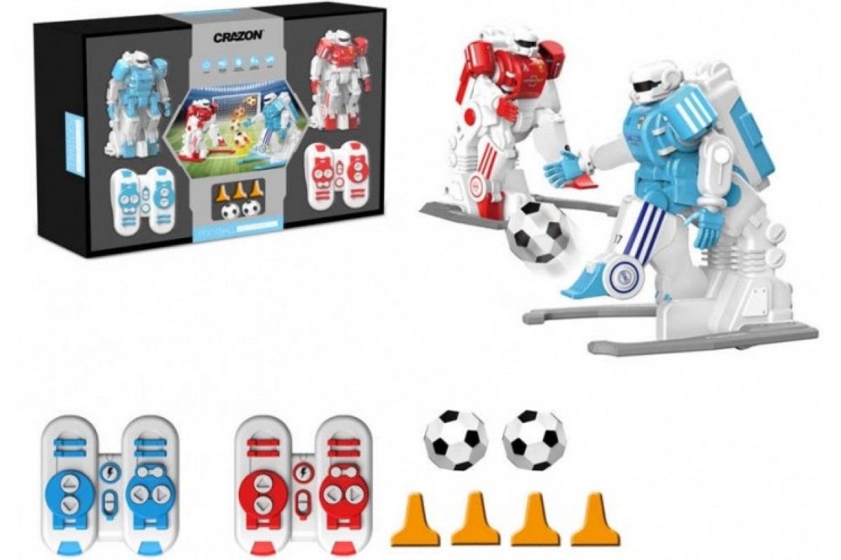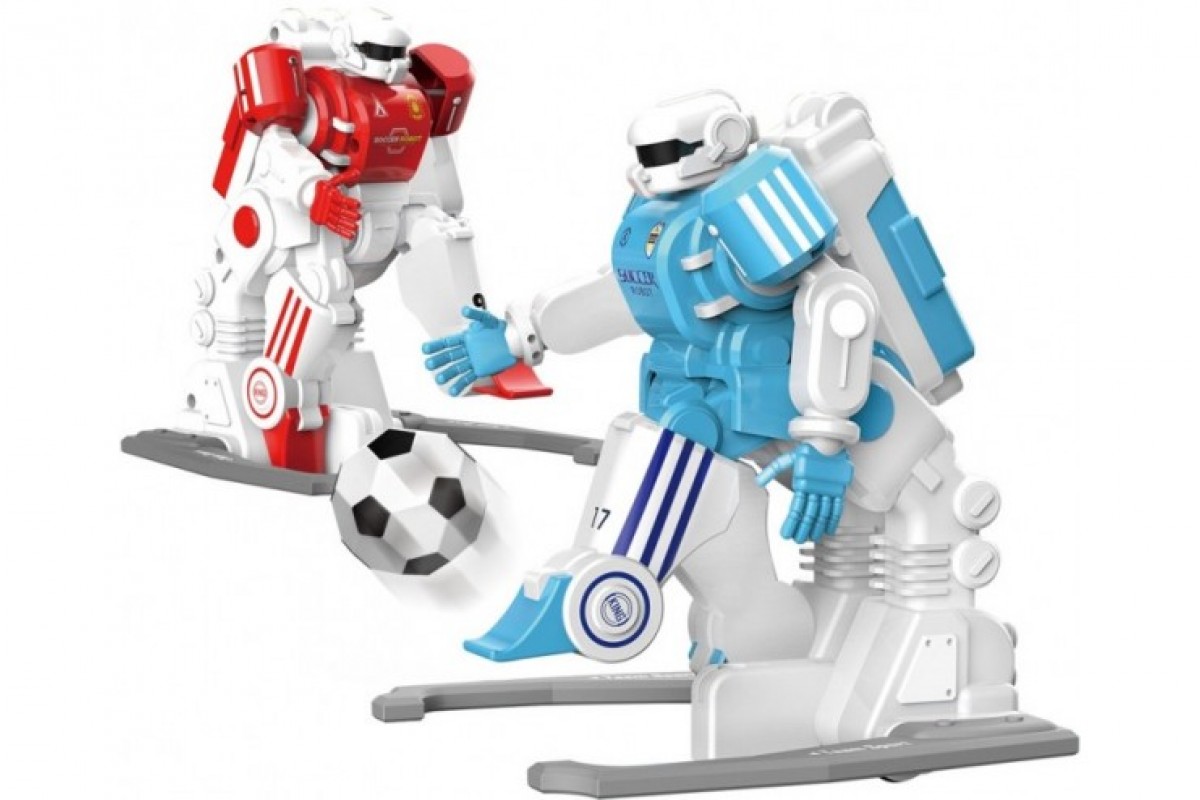 В наборе два робо-футболиста используя которых можно устроить футбольный матч прямо дома. Управлять механическими роботами очень просто с помощью дистанционного управления, можно поворачивать робота влево и вправо, переключать скорость движения и бить ногой по мячу.