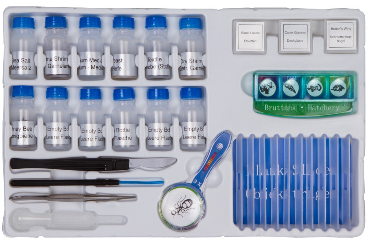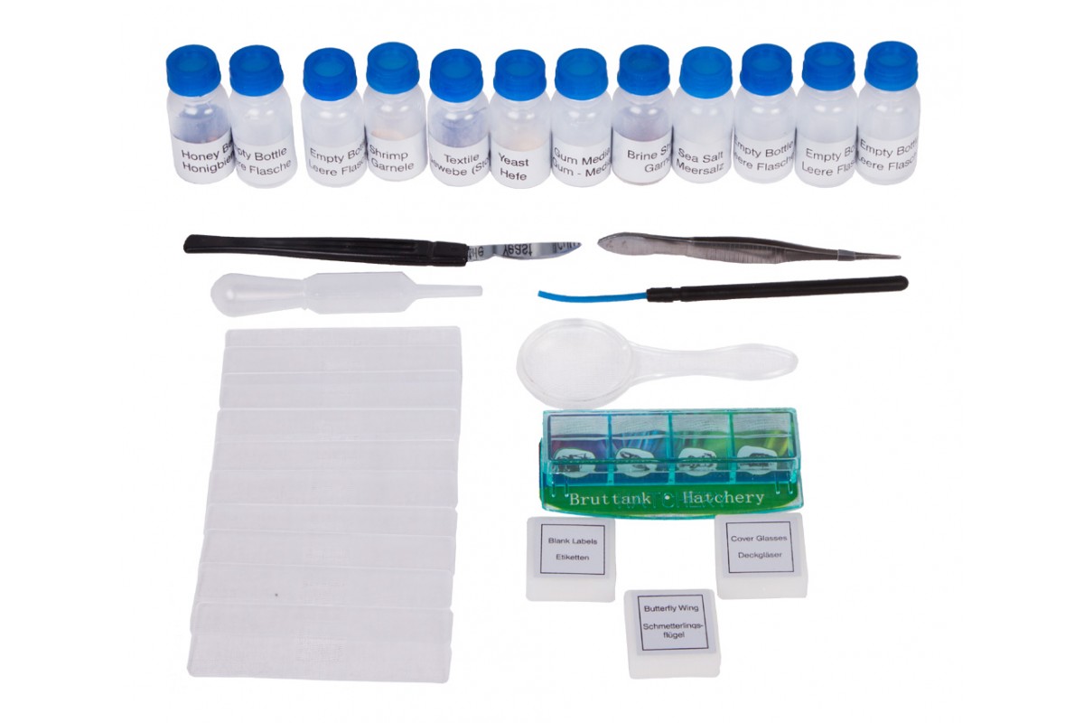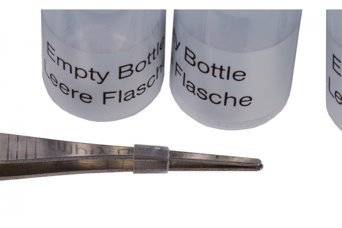 В набор входят и инструменты для работы с образцами. Любой предмет окружающего мира может стать объектом исследований. Для этого его нужно специальным образом подготовить. Этот процесс ребенок без труда освоит, занимаясь с набором для экспериментов Bresser Junior. Все необходимое уже включено в комплект.