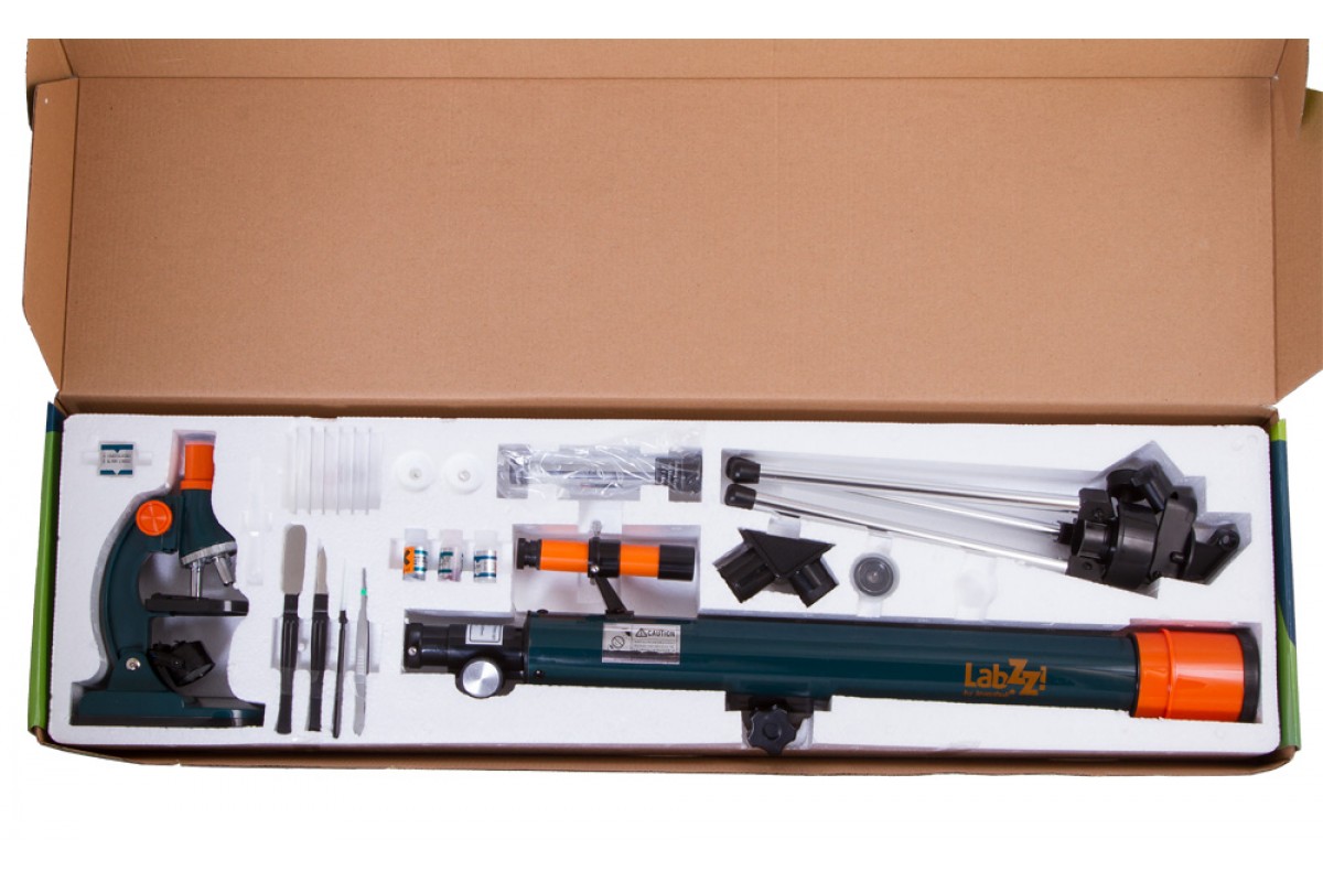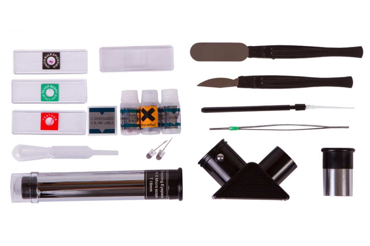 • Набор поставляется со всем необходимым для опытов с микроскопом