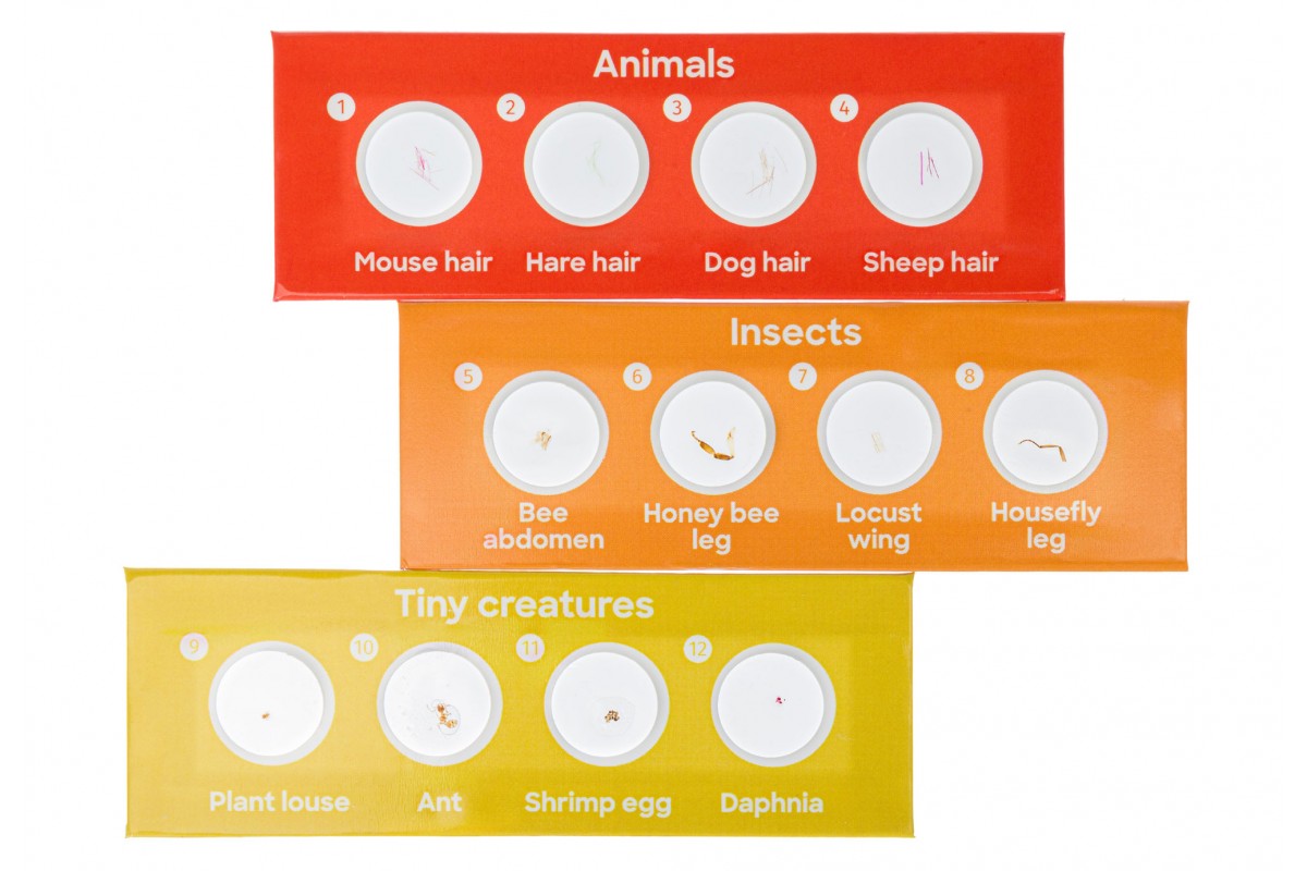 Образцы помещены на 3 слайда по 4 образца на каждом. Они пронумерованы и подписаны, что позволяет легко в них ориентироваться. Набор микропрепаратов Levenhuk Discovery «Фауна» можно изучать под любым микроскопом вне зависимости от марки. Подойдет для детей, подростков и взрослых.
