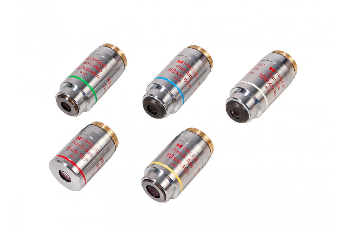 Объективы из набора MAGUS S-APO BD60 предназначены для реализации на микроскопе MAGUS Pol 890 метода темного поля в отраженном свете. Объективы помещают в револьверное устройство вместо штатных объективов, а в турель насадки осветителя отраженного света устанавливают модуль темного поля MAGUS BD90.
