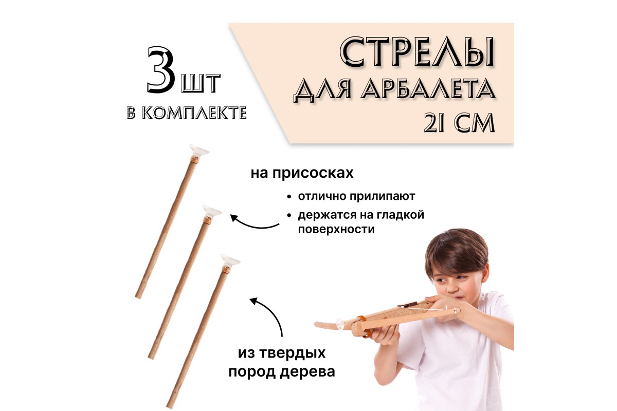 Деревянные стрелы на присосках подходят для арбалета от бренда "Древо игр", в комплекте с которым идет только 2 стрелы. Запаситесь боеприпасами и проводите время за игрой с детьми и взрослыми. Стрельба из арбалета - активная игра, которая понравится людям любого возраста.