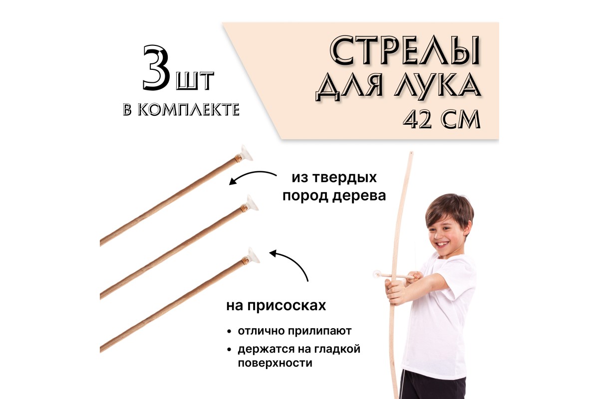 Деревянные стрелы на присосках подходят для лука от бренда "Древо игр", в комплекте с которым идет только 2 стрелы. Запаситесь боеприпасами и проводите время за игрой с детьми и взрослыми. Стрельба из лука - активная игра, которая понравится людям любого возраста.