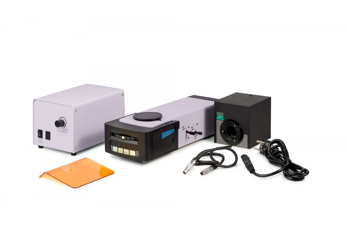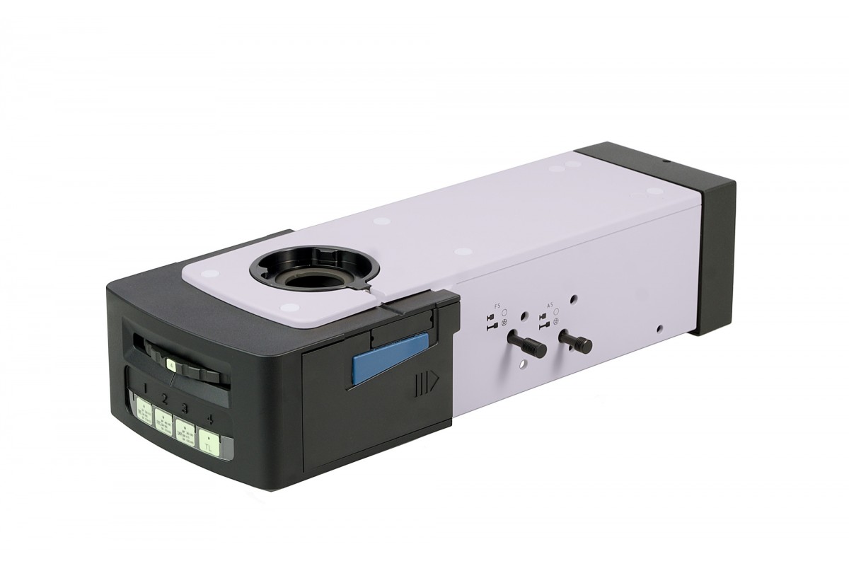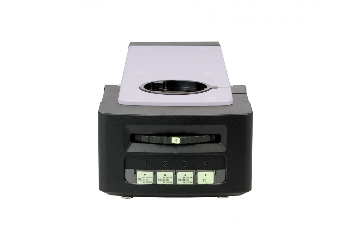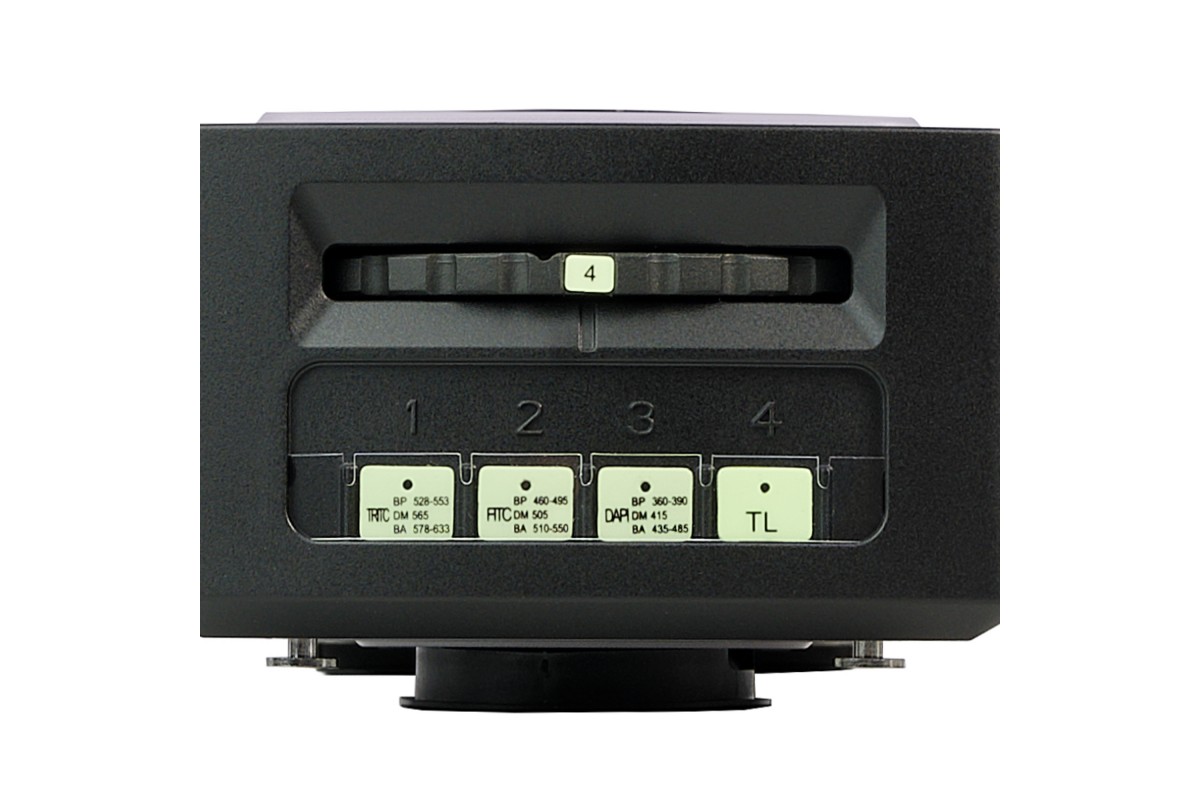 • Три блока узкополосных фильтров для работы с флюорохромами DAPI, FITC и TRITC с точным спектральным разделением