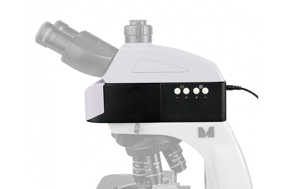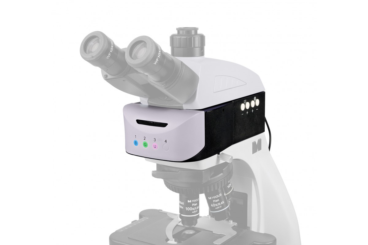 Эпи-люминесцентная насадка MAGUS Epi‑FL04M LED создана для повышения функциональности биологических микроскопов MAGUS. Она включает три широкополосных фильтра, каждый из которых оптимизирован для работы с конкретным диапазоном длин волн: синий (B), зеленый (G), ультрафиолетовый (UV).