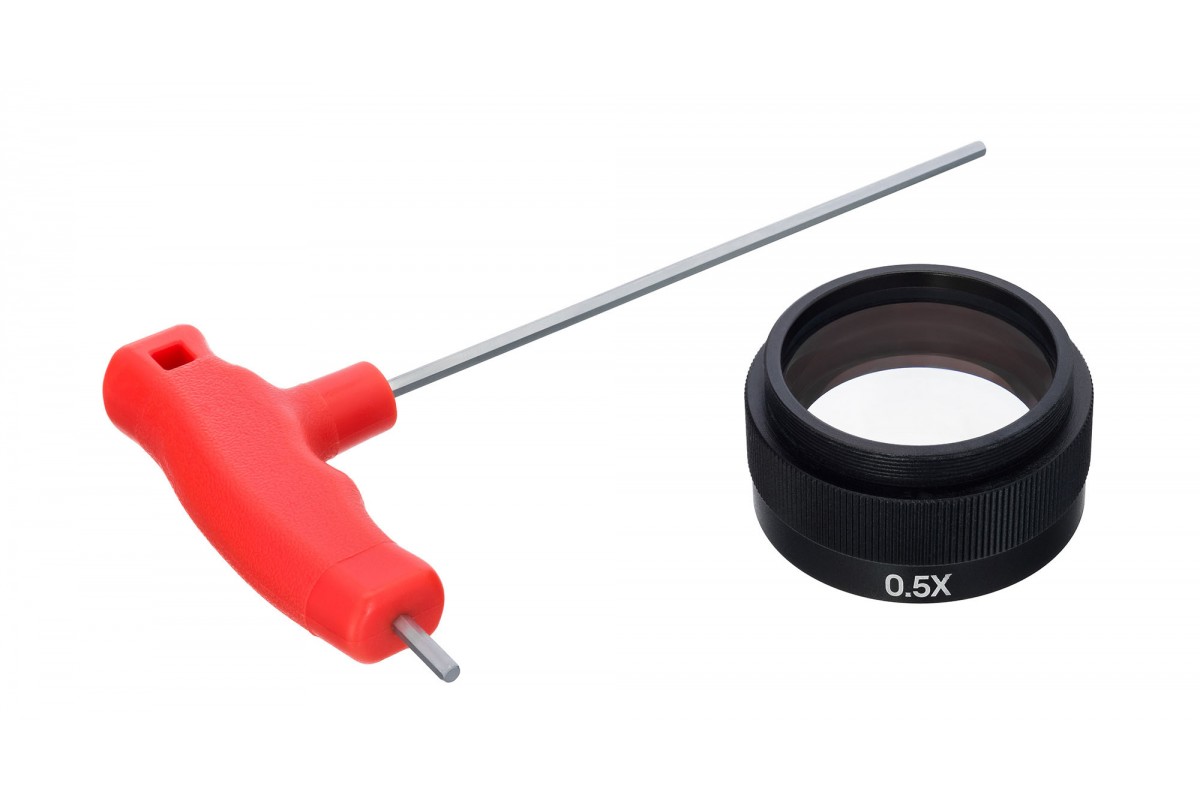 Насадка на объектив SAL05 применяется для увеличения рабочего расстояния стереомикроскопа. Это может понадобиться в случае, если над объектом нужно произвести какие-то работы: пайку, гравировку или другие действия с использованием дополнительных инструментов. Насадка накручивается на крышку объектива. Она обладает собственным увеличением в 0,5 крата и увеличивает поле зрения.