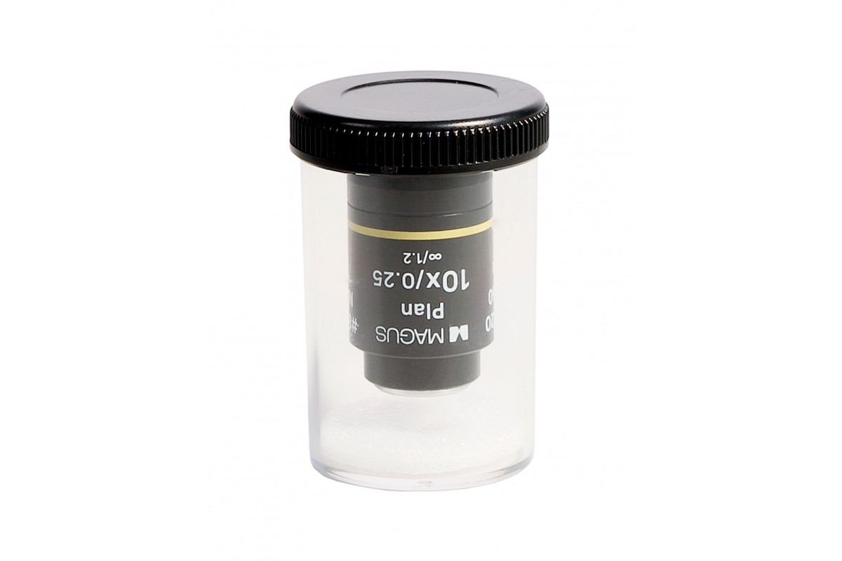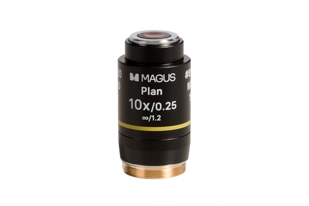 Объектив MAGUS 10PL60V Plan 10x/0,25 ∞/1,2 H60 мм – оптический аксессуар для исследований в светлом поле. Он станет отличным дополнением к микроскопу MAGUS Bio V360, в базовую комплектацию которого входят фазовые объективы. Объектив без фазовой пластины позволяет достичь максимальной контрастности при наблюдениях в светлом поле, поскольку свет проходит напрямую от осветительной системы микроскопа без сдвига по фазе.