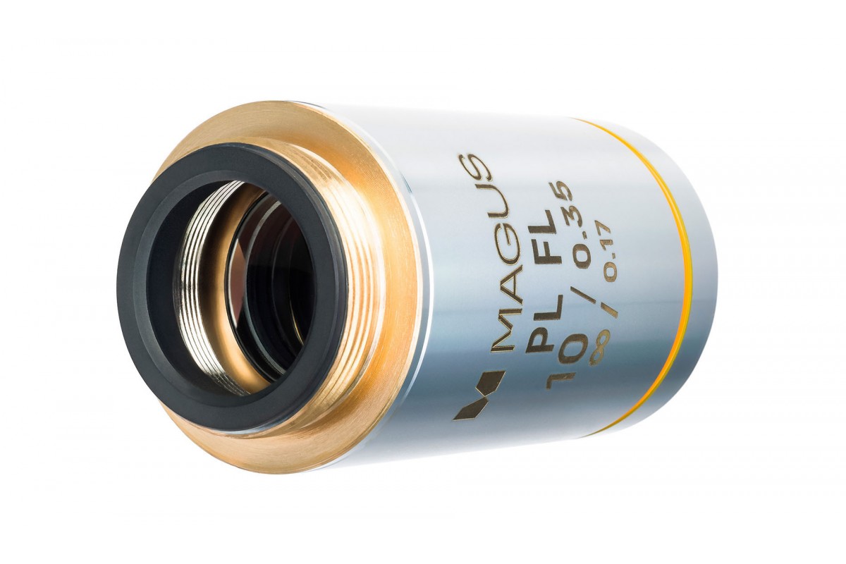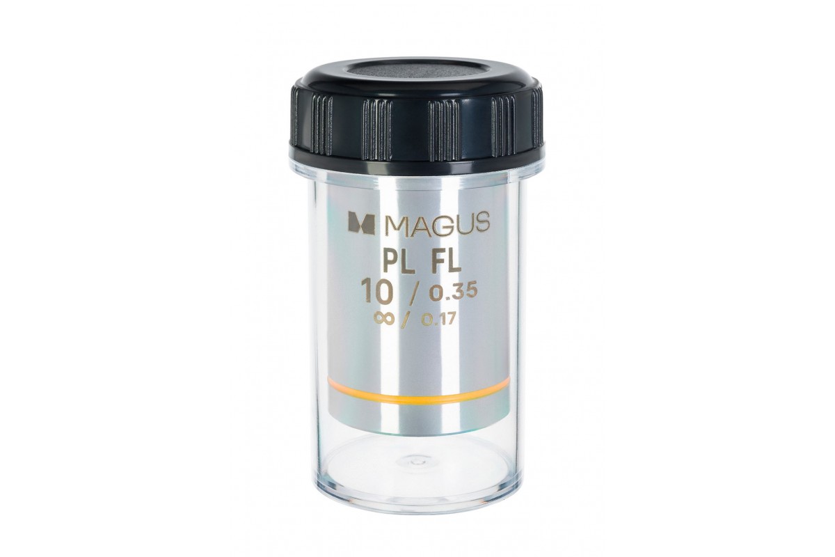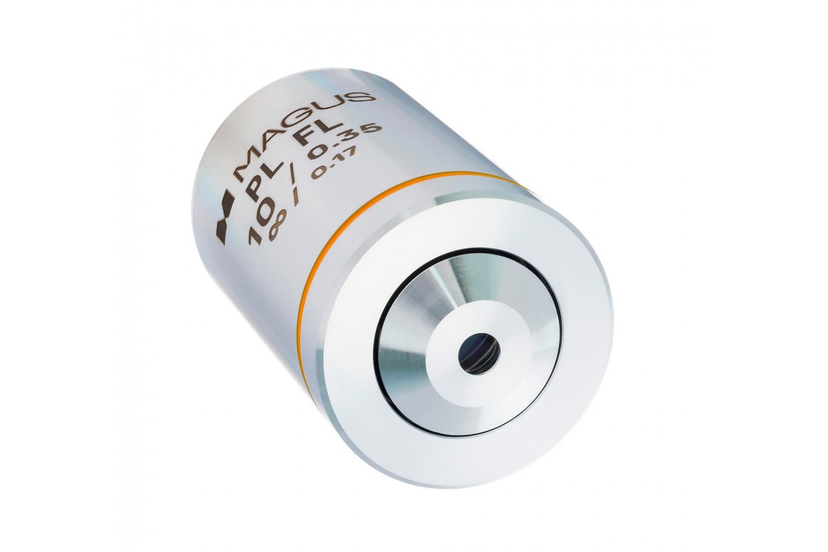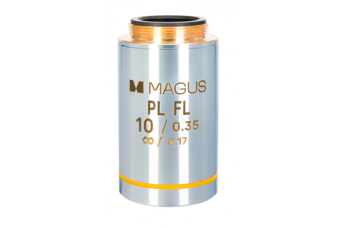 MAGUS 10PLFL – это объектив для наблюдений при люминесцентном свете. Его оптика отличается высокой пропускной способностью для разных волн; объектив не имеет собственного люминесцентного свечения и не допускает двойного лучепреломления – они могут исходить только от препарата. Апертура 0,35 дает объективу большой предел разрешения и разрешающую способность: изображение получается ярким, насыщенным и контрастным.