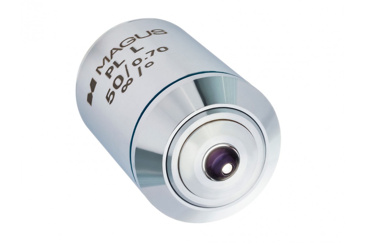 Металлографический объектив отличается большим рабочим расстоянием. Для объектива 50PLL это 3,68 мм. Большое расстояние необходимо, поскольку на металлографическом микроскопе часто исследуют рельефные объекты, и при обычном расстоянии между образцом и линзой есть опасность повредить одно или другое. Объектив спроектирован под тубус «бесконечность», парфокальная высота – 45 мм. При работе покровное стекло не используется.