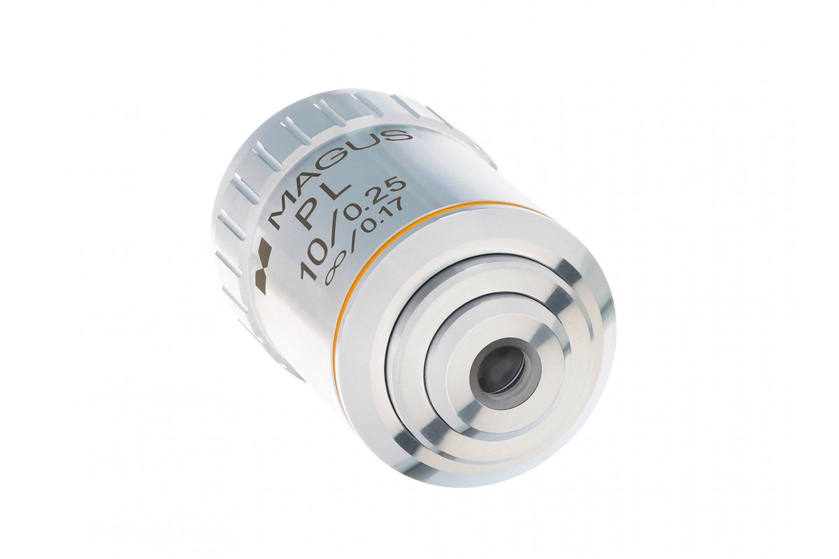 Объектив MAGUS MP10 разработан для получения четкого и ясного изображения в светлом поле. Модель обладает 10-кратным увеличением и апертурой 0,25, она скорректирована на бесконечность и предполагает совместное использование с покровным стеклом толщиной 0,17 мм. Максимальное разрешение – 1,1 мкм, парфокальная высота – 45 мм.