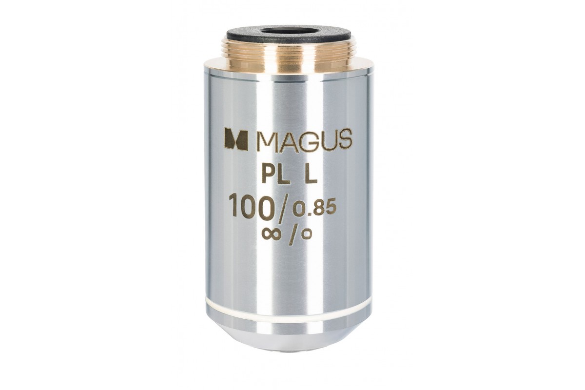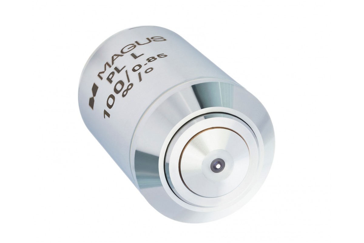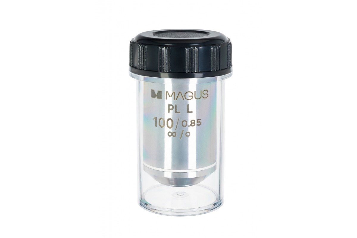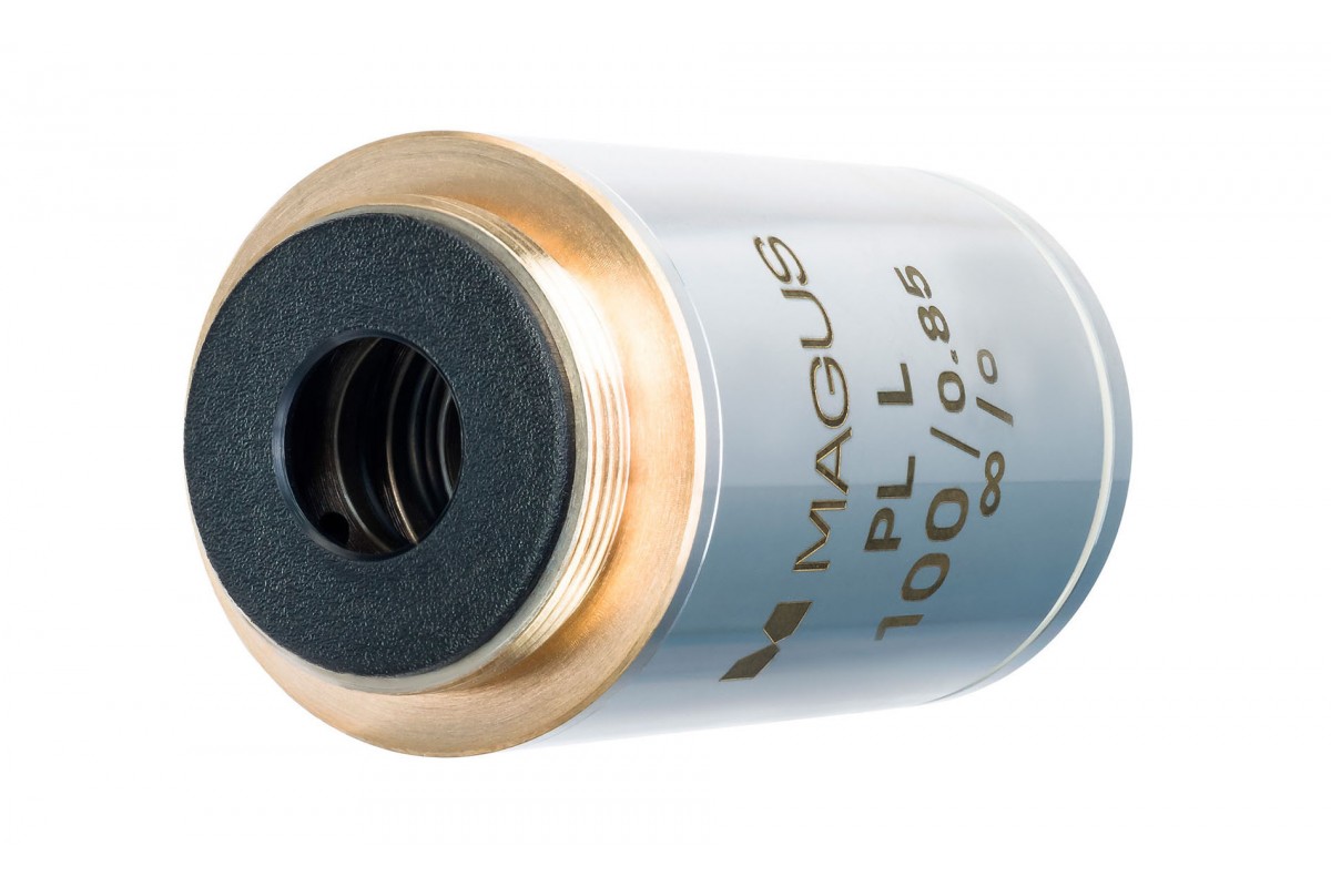 Объектив разработан под тубус с бесконечной оптической длиной. Парфокальная высота – 45 мм. Не требует покровного стекла. Минимальная дистанция между двумя различимыми точками – 0,33 мкм.