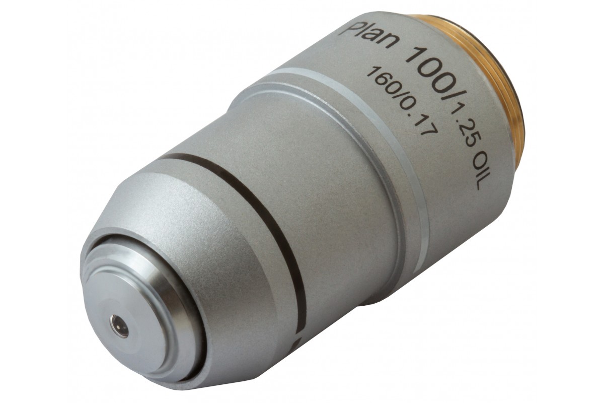 Levenhuk MED 100x – это 100-кратный планахроматический объектив, который можно устанавливать на микроскопы любых марок. Он подходит для микроисследований как «сухим», так и «масляным» методом. Вокруг передней линзы расположена пружинящая оправа, которая защищает объектив от случайного повреждения.