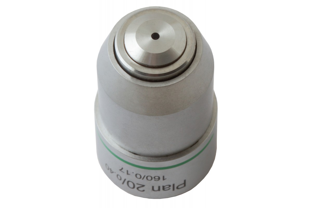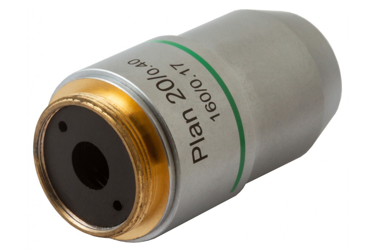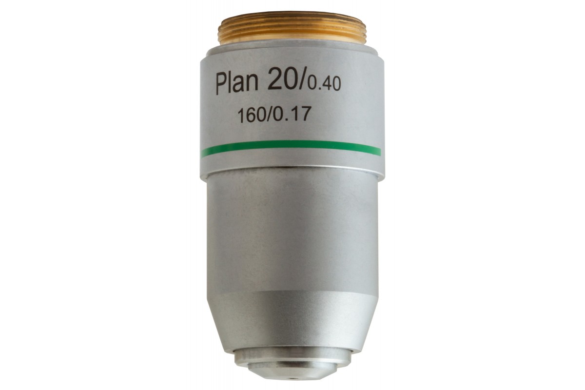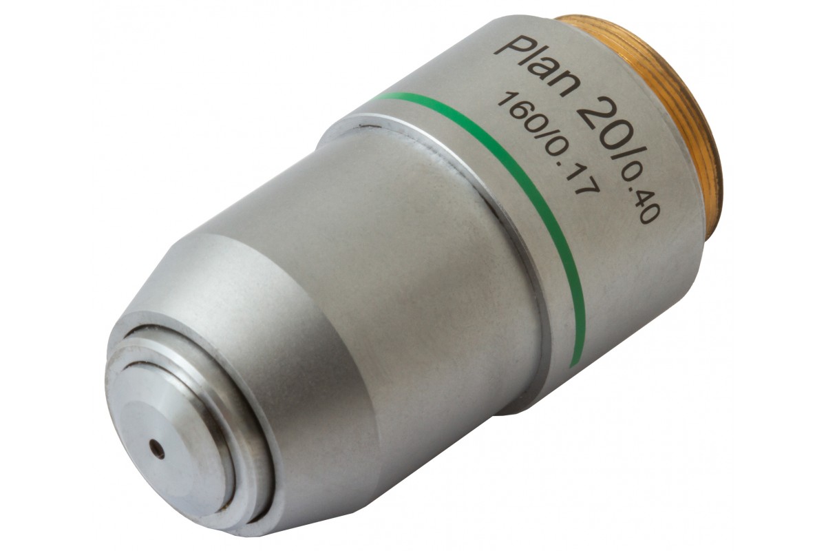 Levenhuk MED 20x – планахроматический объектив, оптика которого убирает из передаваемой картинки сферические искажения и делает поле зрения максимально плоским. Перед исследователем предстает четкая, высокодетализированная и ясная картинка, которая сохраняется даже в случае работы со сложными микроструктурами. Линзы объектива сделаны из стекла и дают 20-кратное увеличение. Корпус – металлический.
