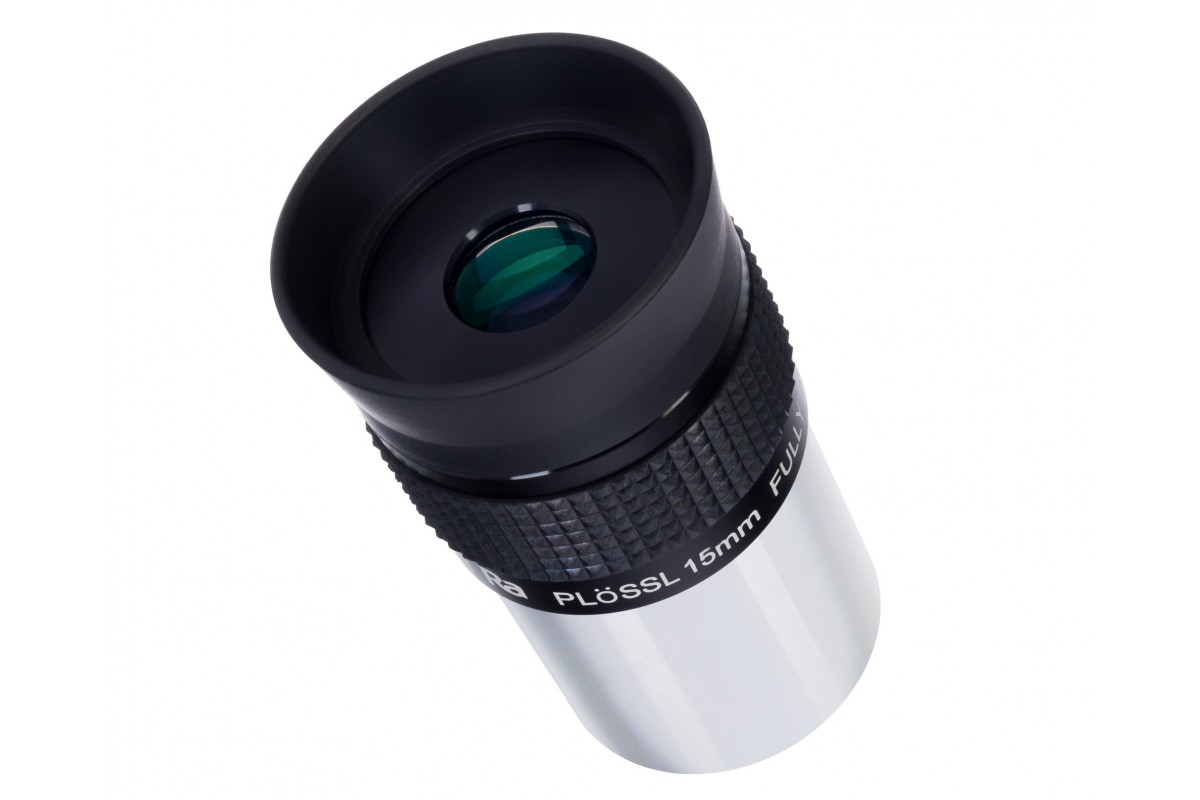 Окуляр Levenhuk Plössl 15 мм подходит к любым телескопам с фокусером 1,25 дюйма. Благодаря многоэлементной оптике с просветлением и комфортному полю зрения в 50° он станет хорошим выбором для наблюдения Луны, планет Солнечной системы и далеких звезд. Окуляр хорошо подходит и для поиска астрономических объектов, и для их подробного изучения.