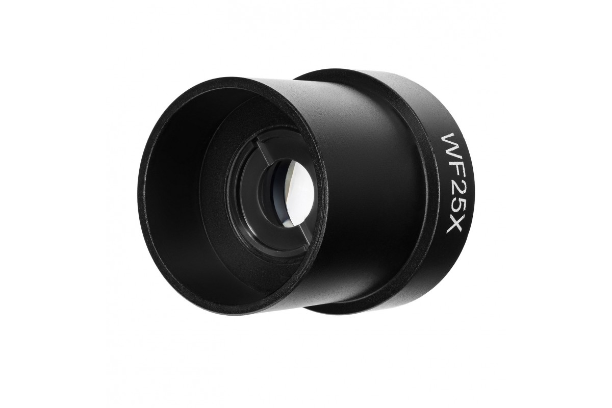 Окуляр с увеличением 25 крат и с полем зрения 9 мм. Используется с объективами 4 и 10 крат. Разработан специально для микроскопов MAGUS с диаметром окулярного тубуса 30 мм. Кольцо диоптрийной коррекции на окуляре не предусмотрено, резкость подводят с помощью кольца на тубусе микроскопа. Для наблюдателей, носящих очки, предусмотрен вынос выходного зрачка 10 мм. Линзы изготовлены из оптического стекла, корпус выполнен из меди.