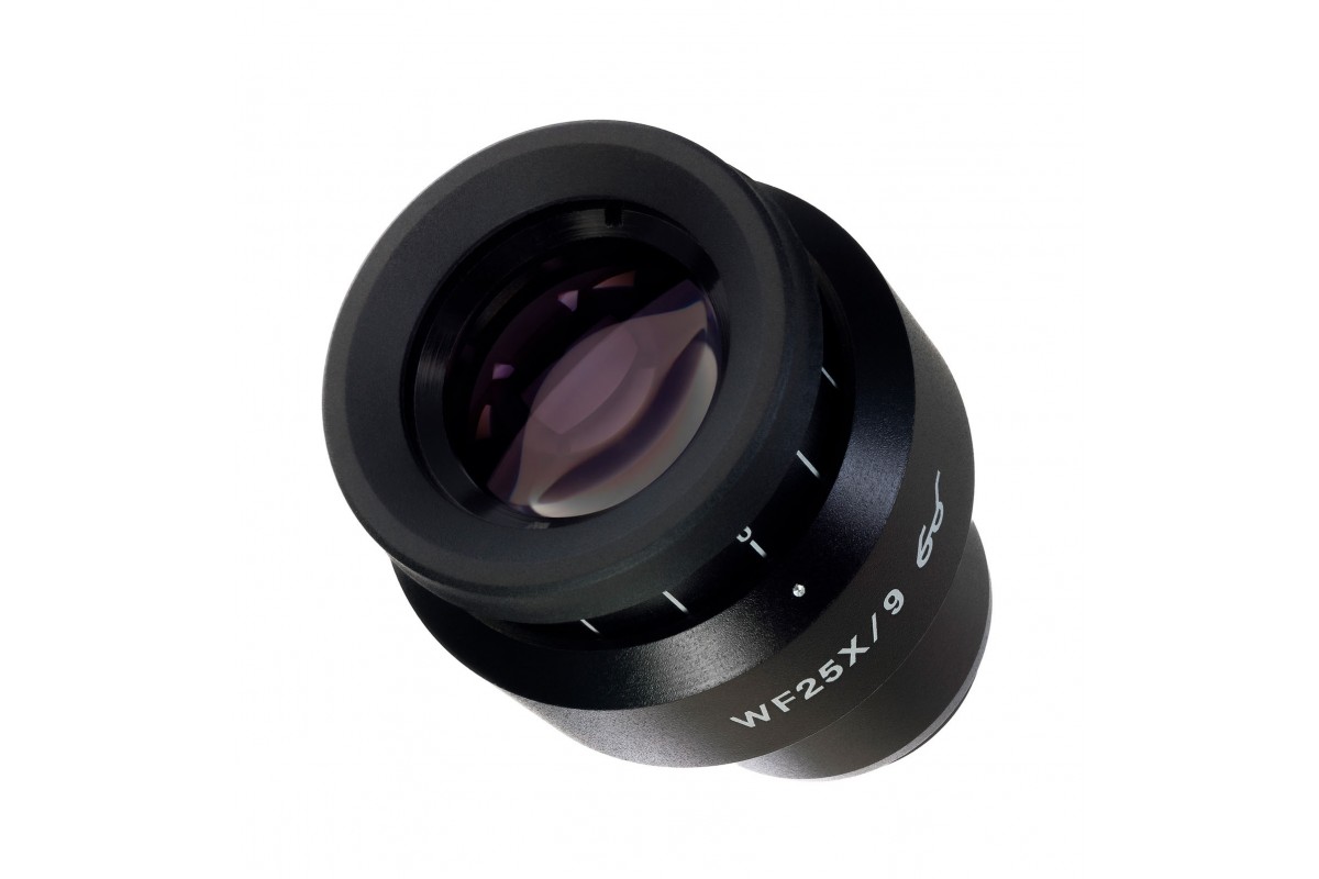 MAGUS SD25, увеличивающий диапазон приближения стереоскопического микроскопа, оптимально дополнит прибор без диоптрийной подстройки на окулярном тубусе. При поле зрения в 9 мм окуляр обеспечивает 25-кратное приближение. За счет диоптрийной коррекции он отлично подойдет для получения резкого и объемного изображения при неидеальном зрении. При этом функция не препятствует совместимости с микроскопом, который уже оснащен регулировкой диоптрий, – настройка может быть выполнена как на окулярной трубке, так и на самом окуляре.