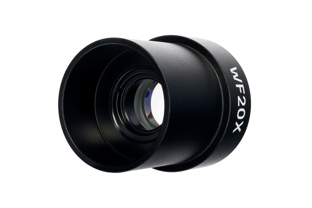 Модель SE20 работает со стереомикроскопом и дает увеличение 20 крат. Окуляр не оснащен кольцом диоптрийной подвижки, поэтому пользоваться им с комфортом смогут исследователи с одинаковыми параметрами зрения на каждом глазу. Настроить резкость изображения для дальнозоркости или близорукости при использовании этого окуляра можно на микроскопе с коррекцией диоптрий на окулярном тубусе. Окуляр SE20 усаживается в тубус диаметром 30 мм.