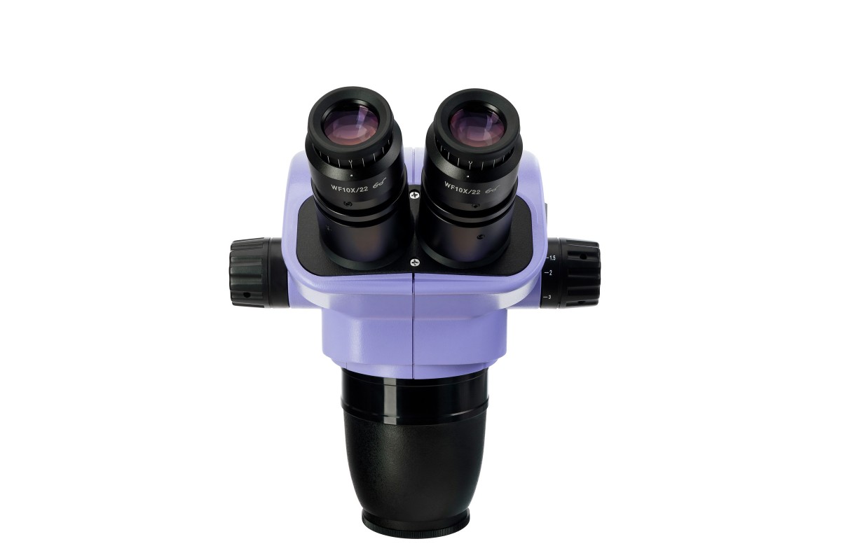 Объектив плавно изменяет увеличение в 6,7 раз без потери фокуса. Оптическая система формирует прямое (неперевернутое) объемное изображение. Дополнительные насадки на объектив изменяют диапазон увеличения, поле зрения и рабочее расстояние микроскопа.