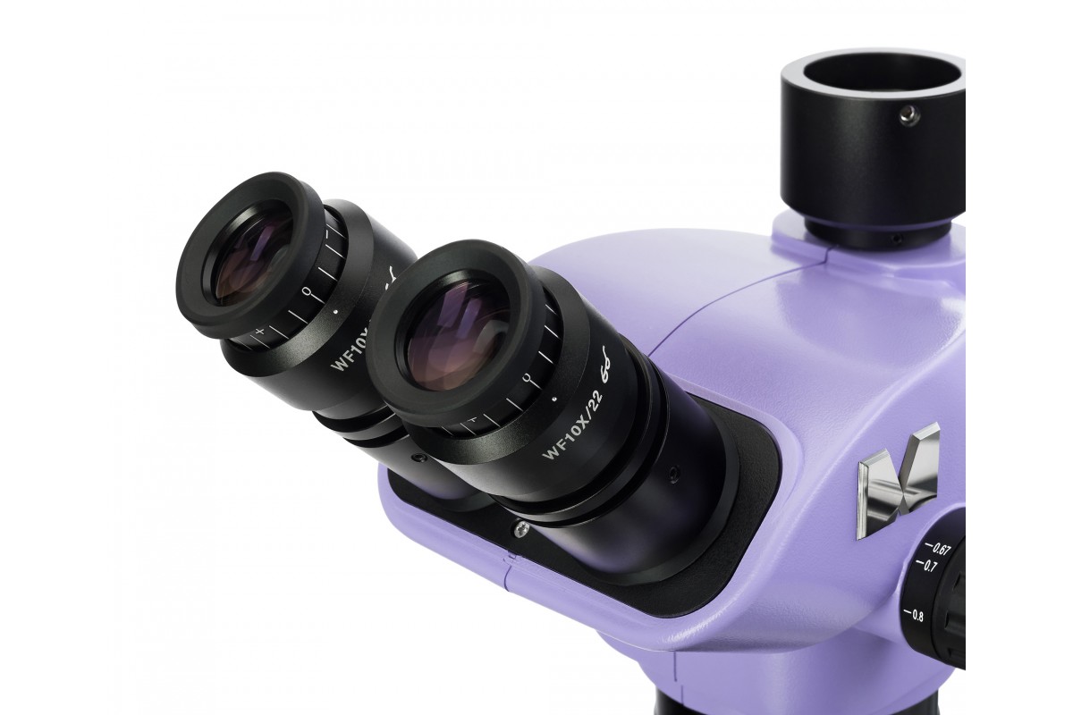 Визуальная насадка тринокулярная, цифровая камера устанавливается в канал визуализации при помощи адаптера C-mount. Для дополнительного заказа доступны адаптеры с разной кратностью.