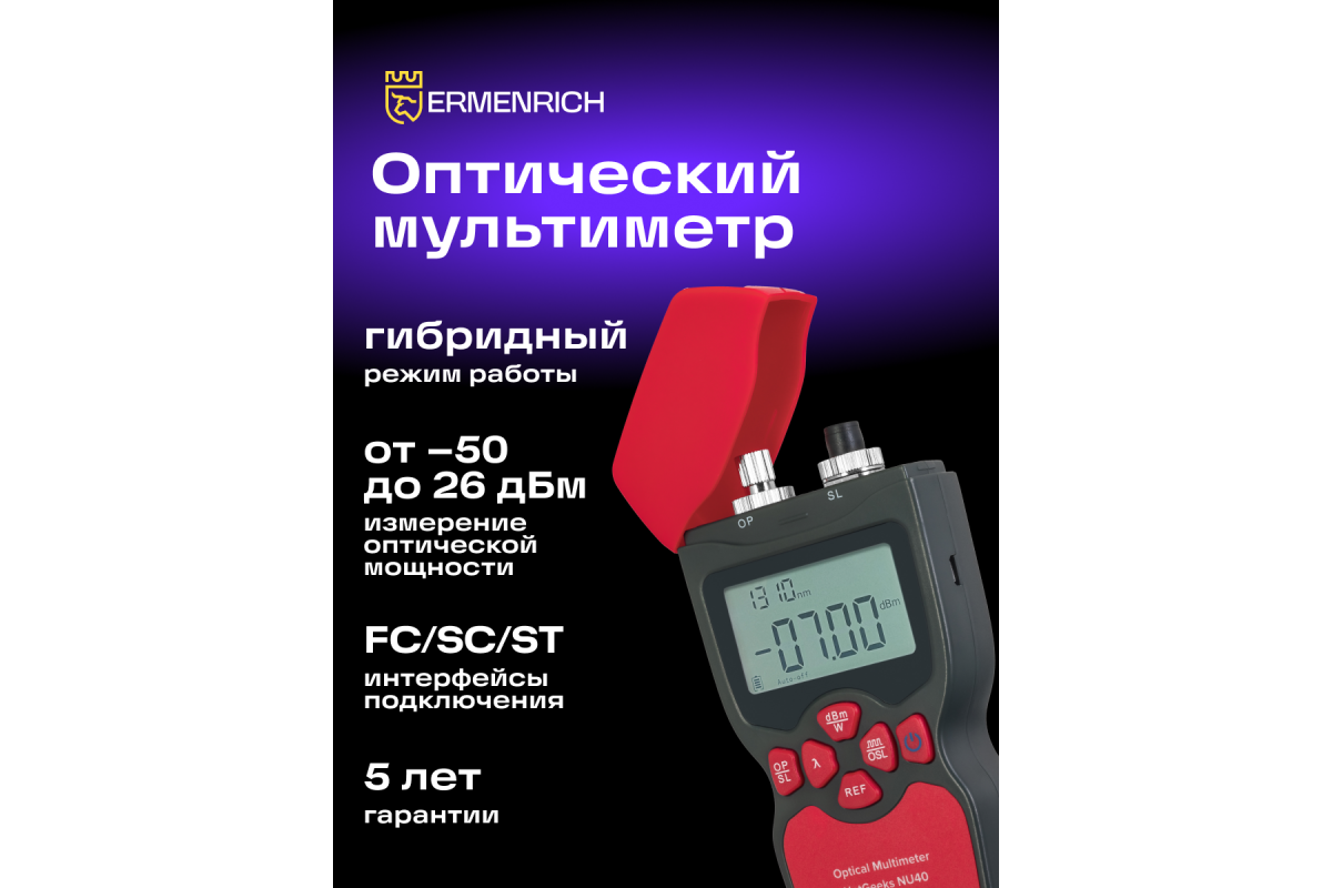 Компактный прибор для определения оптической мощности и потерь (затухания) сигнала в кабельной линии. Работает на 6 длинах волн: 850, 1300, 1310, 1490, 1550, 1625 нм. Также имеет функцию источника света и поддерживает гибридный режим работы: прибор выступает одновременно и как измеритель оптической мощности, и как источник света, не требуя дополнительных устройств при тестировании кабеля. Измеритель требуется специалистам разного профиля: инженерам ВОЛС, мастерам по монтажу и ремонту оптоволоконных кабелей, системным администраторам.