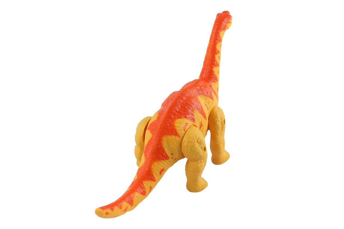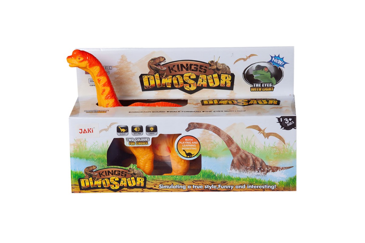 Оранжевый динозавр Бронтозавр JiaQi (световые и звуковые эффекты) - TT351-ORANGE - это игрушка ''Динозавр''. Она очень понравится детям, которые любят доисторических гигантов. Брахиозавр является представителем динозавров, которые жили на земле в далеком доисторическом прошлом. Фигурка может самостоятельно передвигаться, при этом срабатывают звуковые и световые эффекты, что значительно расширяет ее игровые возможности. 4 подвижные лапы. При включении шагает (движение только вперед), издавая реалистичные звуки, включается мигающая подсветка глаз.