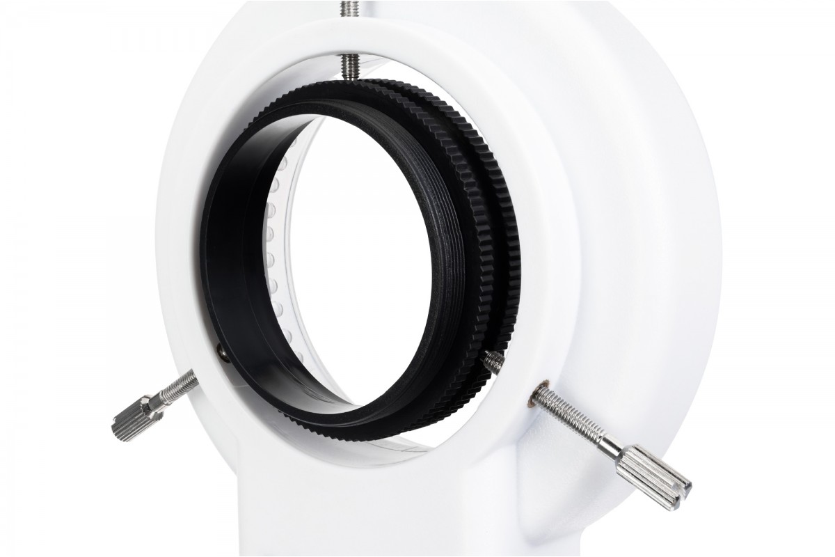 Кольцевой осветитель Levenhuk LED 144 используется для ведения наблюдений в отраженном свете и создает полностью бестеневое освещение рабочей области. Он состоит из 144 светодиодов регулируемой яркости, которые светят в диапазоне около 6500 К – это соответствует холодному белому оттенку освещения. Такое освещение наиболее востребовано у тех, кто проводит высокоточные работы с использованием стереомикроскопа, так как позволяет видеть мелкие детали образцов наиболее четко и ясно.