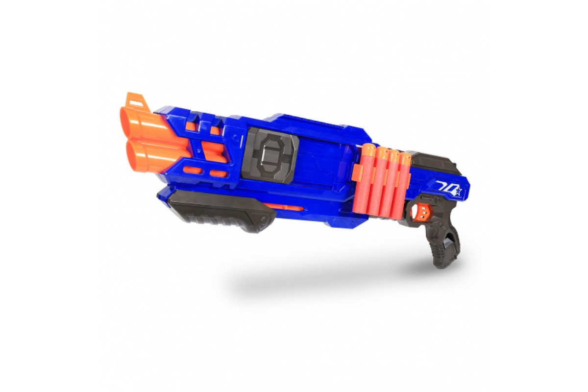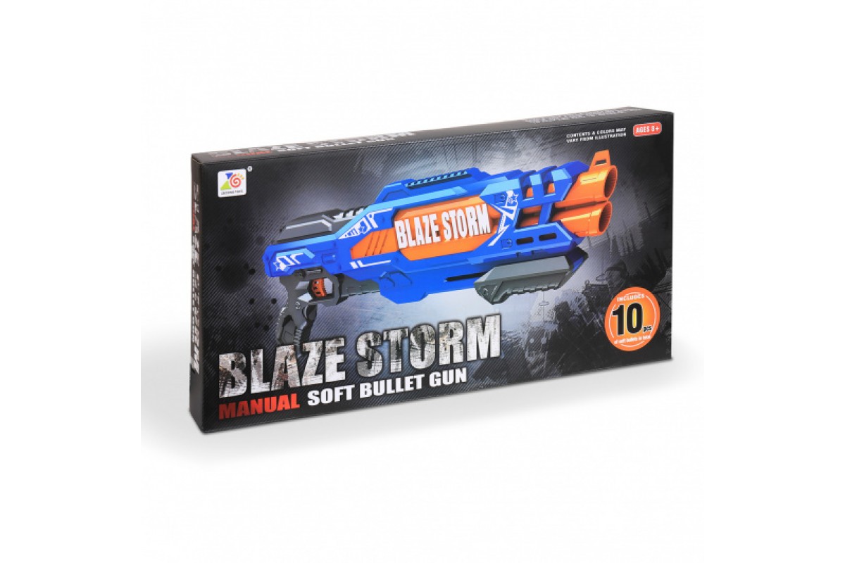 Пистолет BlazeStorm с мягкими МЕГАпулями (2-ой выстрел) - ZC7111 - это механический бластер с мягкими Мегапулями (большие красные патроны, летают со свистом). Двойной выстрел. Есть крепление для 4-х дополнительных боеприпасов. В комплекте 10 МЕГАпуль.