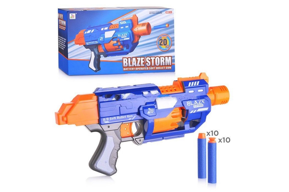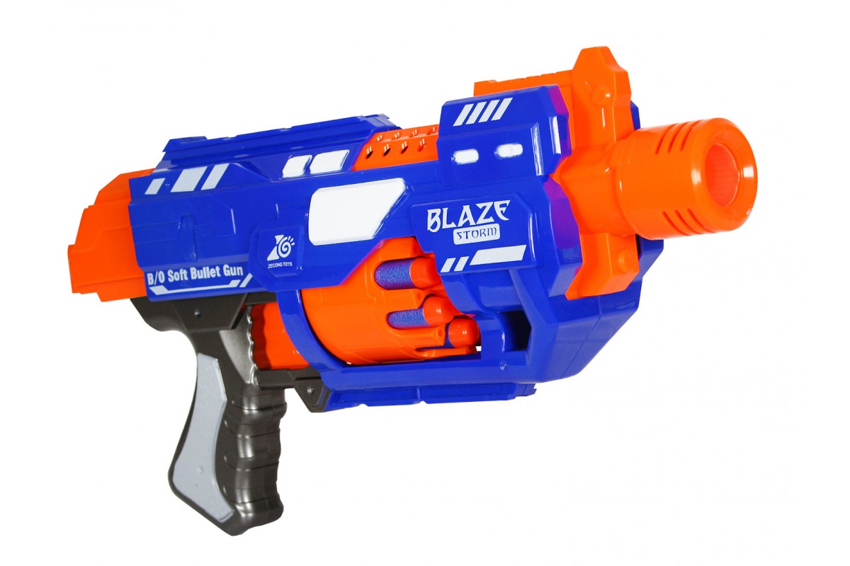 Пистолет BlazeStorm с мягкими пулями на батарейках - ZC7033 - это десятизарядный бластер "BlazeStorm" с мягкими пулями и автоматическим режимом стрельбы на батарейках, с которым малыш почувствует себя храбрым служителем закона в современном мире! Яркий пистолет с легкостью заряжается мягкими пулями, которые не наносят травм и безопасны для здоровья ребёнка. Мальчишка будет тренировать меткость в стрельбе по мишеням или участвовать в войнушке во дворе.