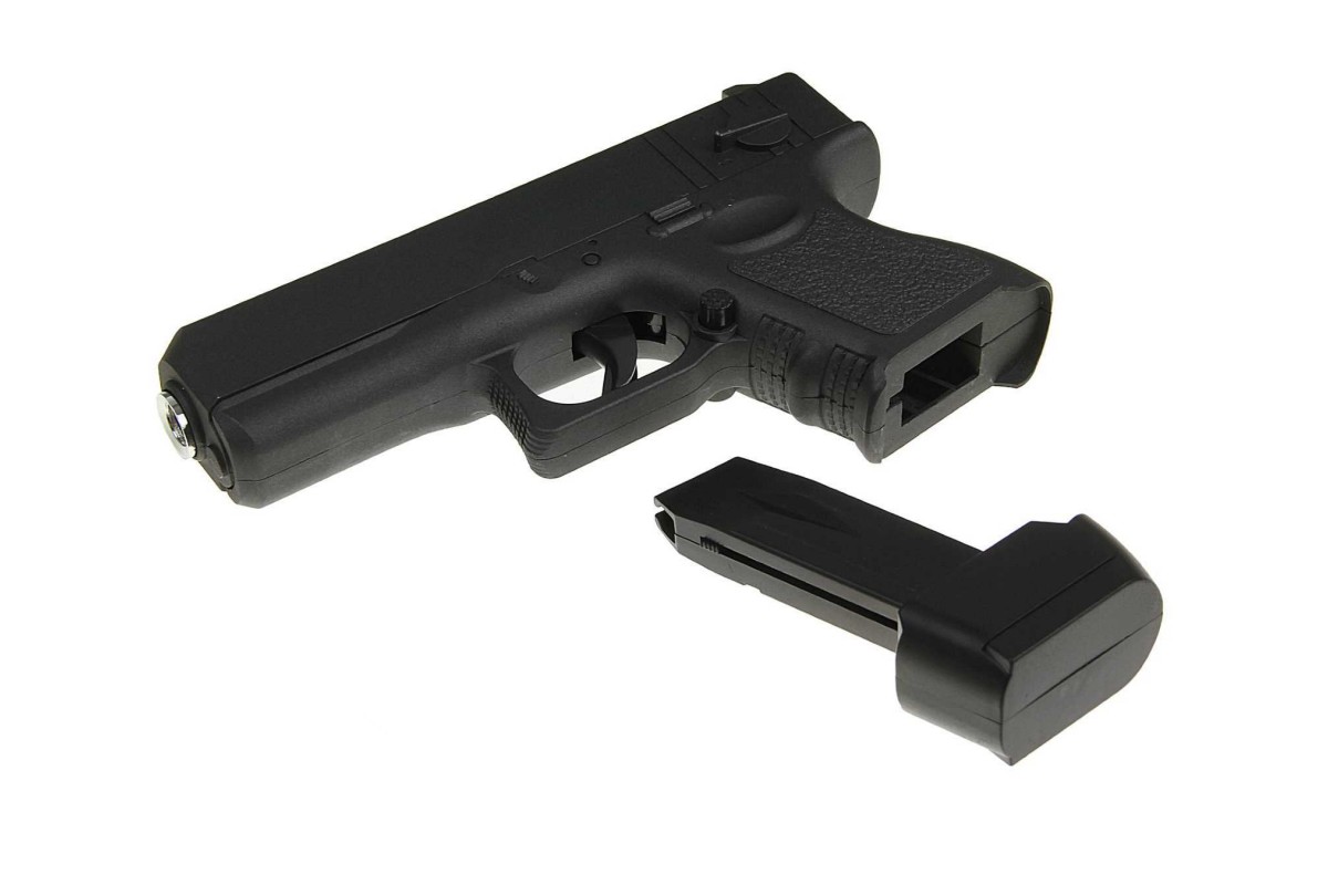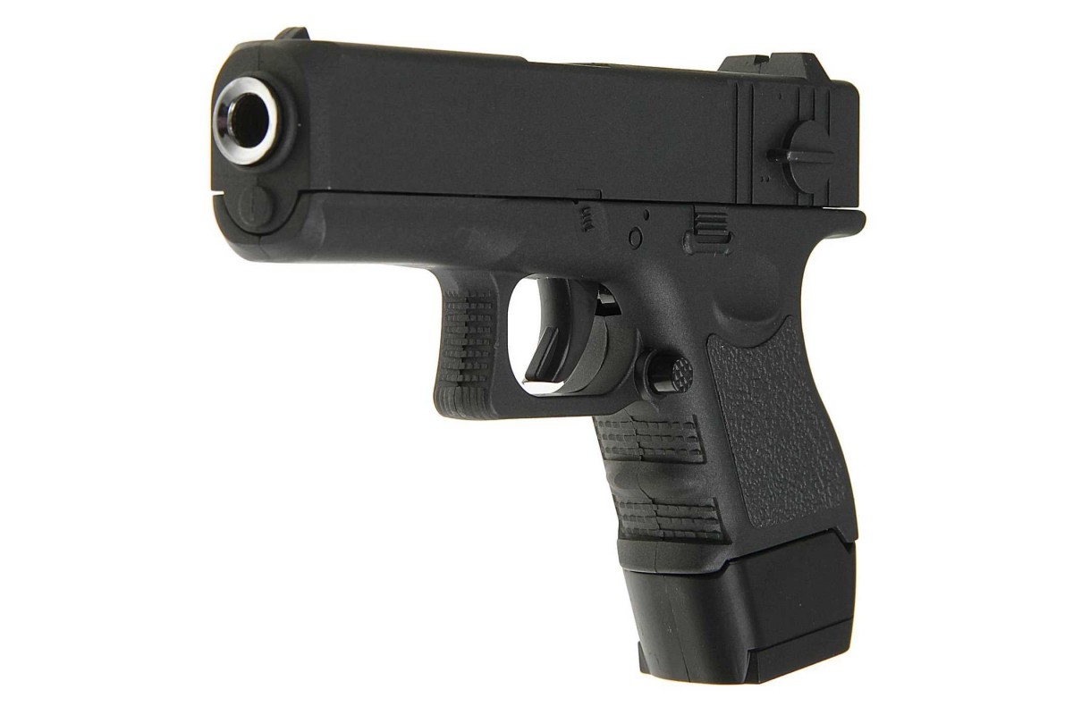 Пистолет металлический Glock 17 mini (пневматика, 14 см) - G.16 - это качественная компактная спринговая страйкбольная модель пистолета Glock 17, изготовленная из качественного цинкового сплава и пластика. Начальная скорость выстрела шарика 60-69 метров в секунду.