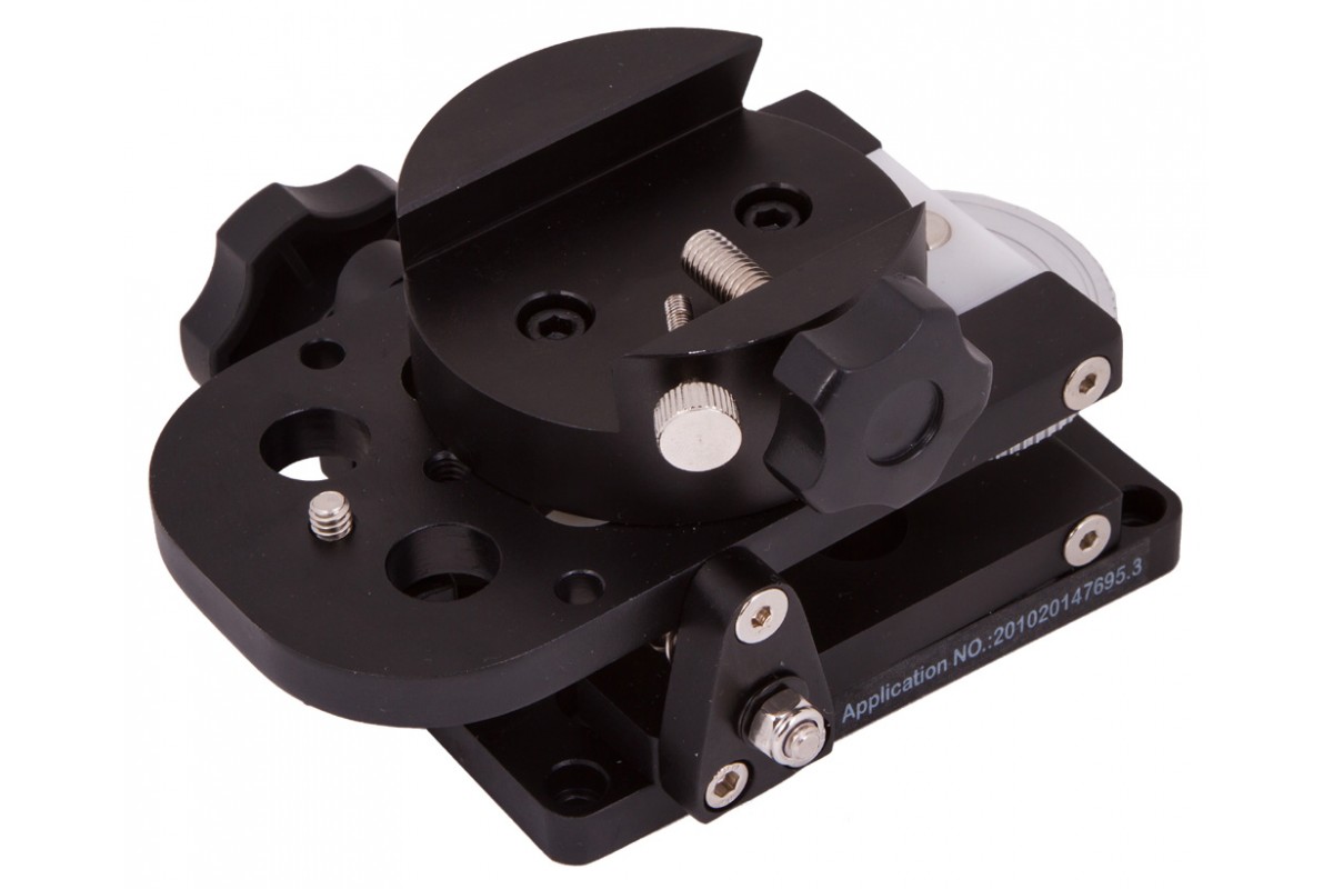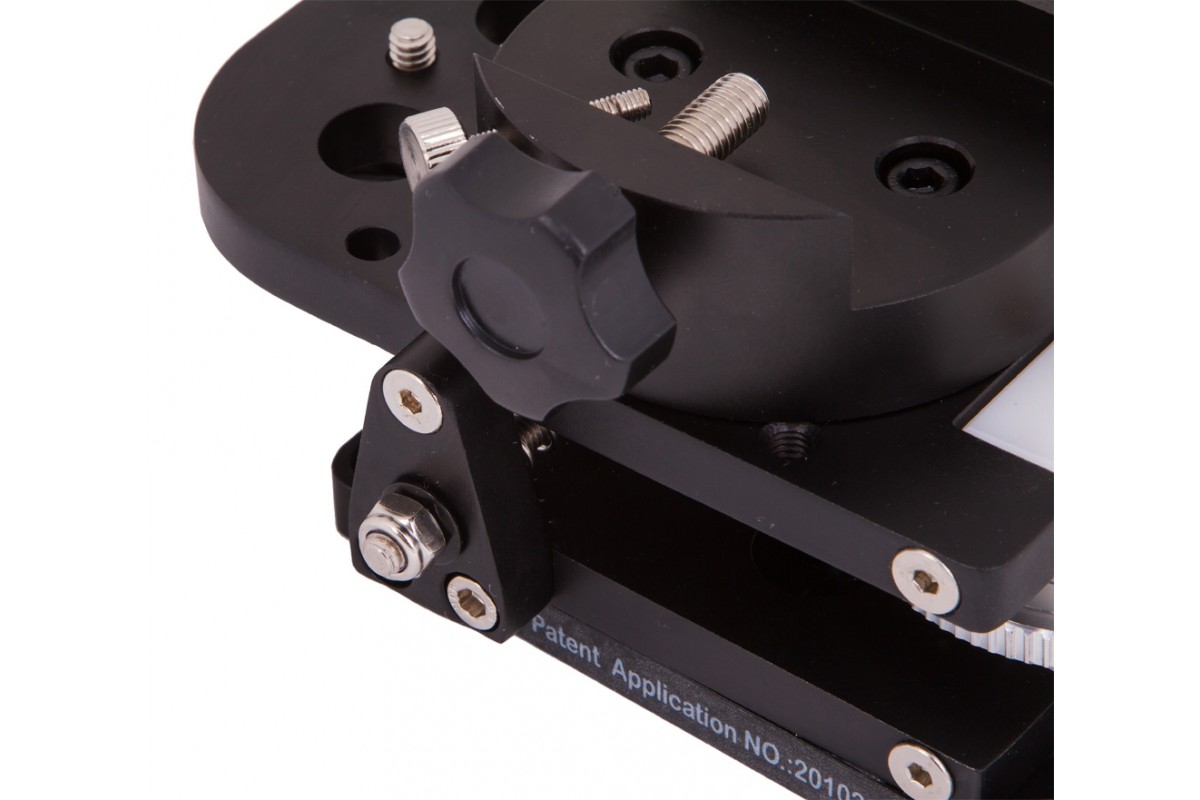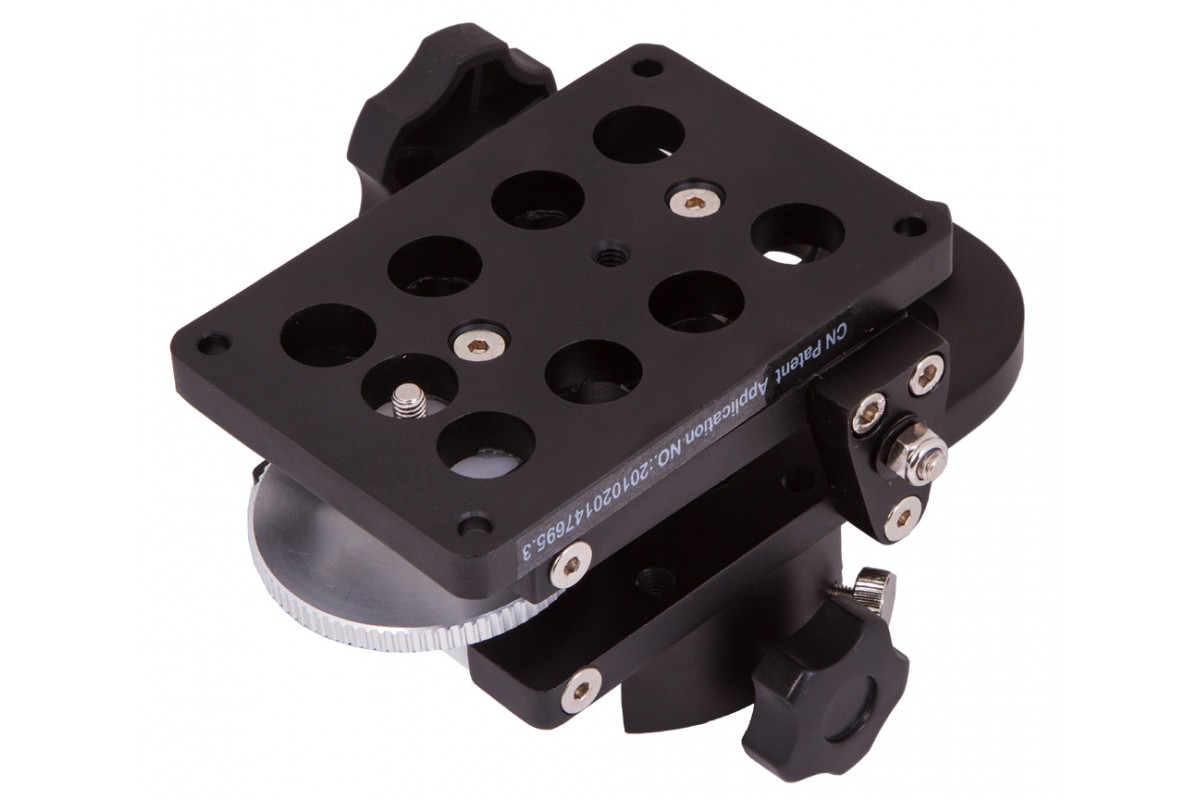 Крепежная площадка фиксируется на трубе телескопа четырьмя винтами. Для установки дополнительного оборудования – гидирующей трубы или камеры – используется пластина «ласточкин хвост».
