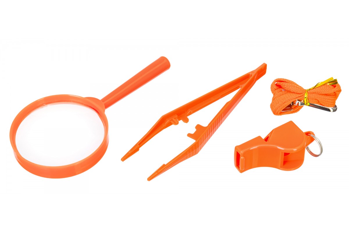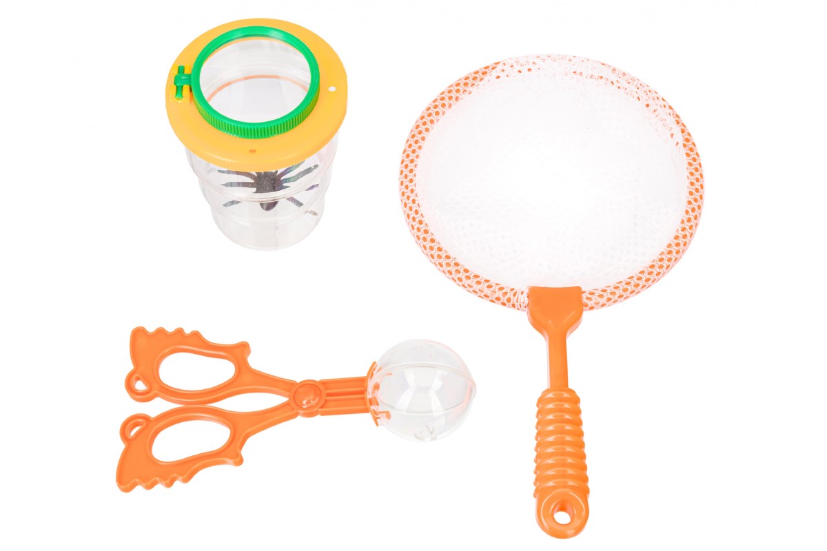 Если ребенок увлекается миром насекомых, его порадуют включенные в набор энтомологические приспособления: складной сачок, лупа на ручке и лупа-стакан, ручная ловушка для насекомых и пластиковый пинцет. С помощью этих инструментов можно аккуратно ловить насекомых и исследовать на увеличении, а при желании – собирать коллекции.