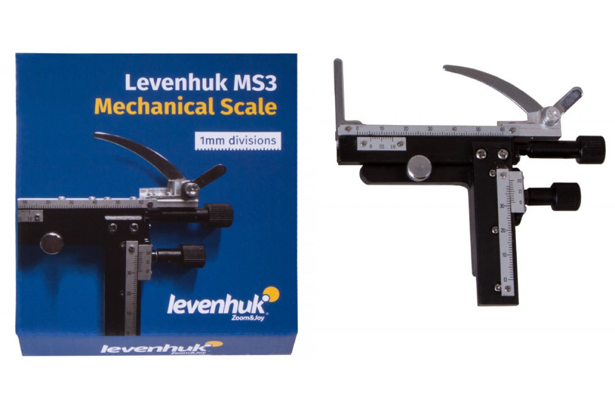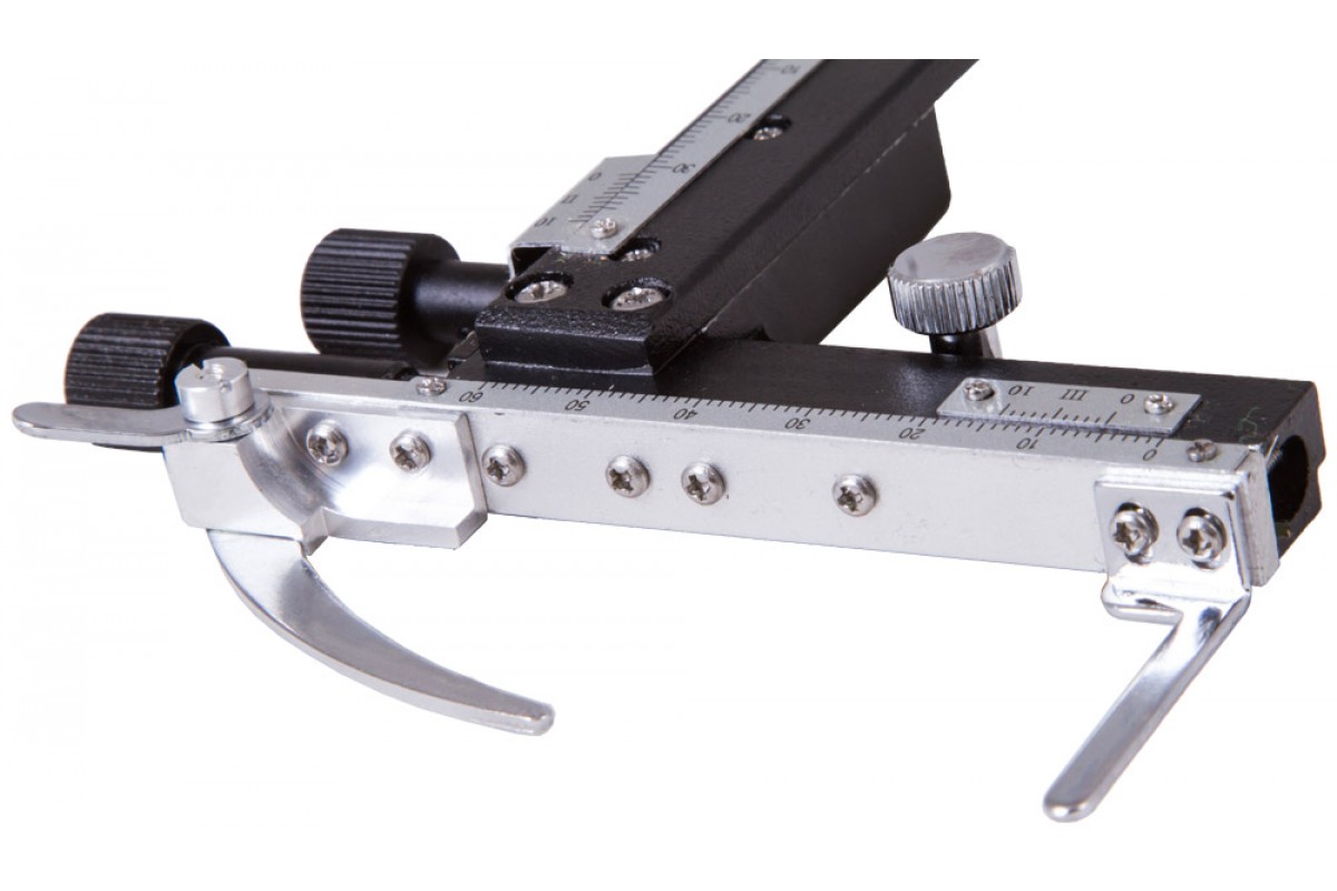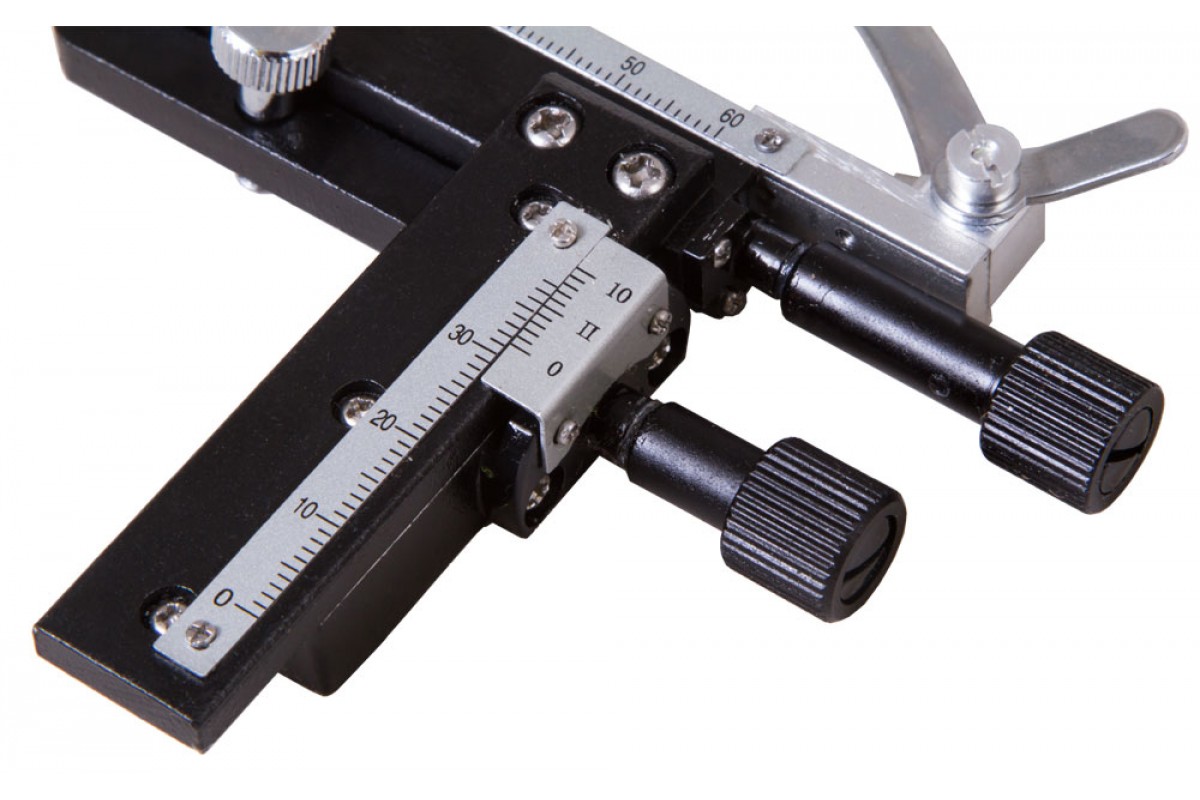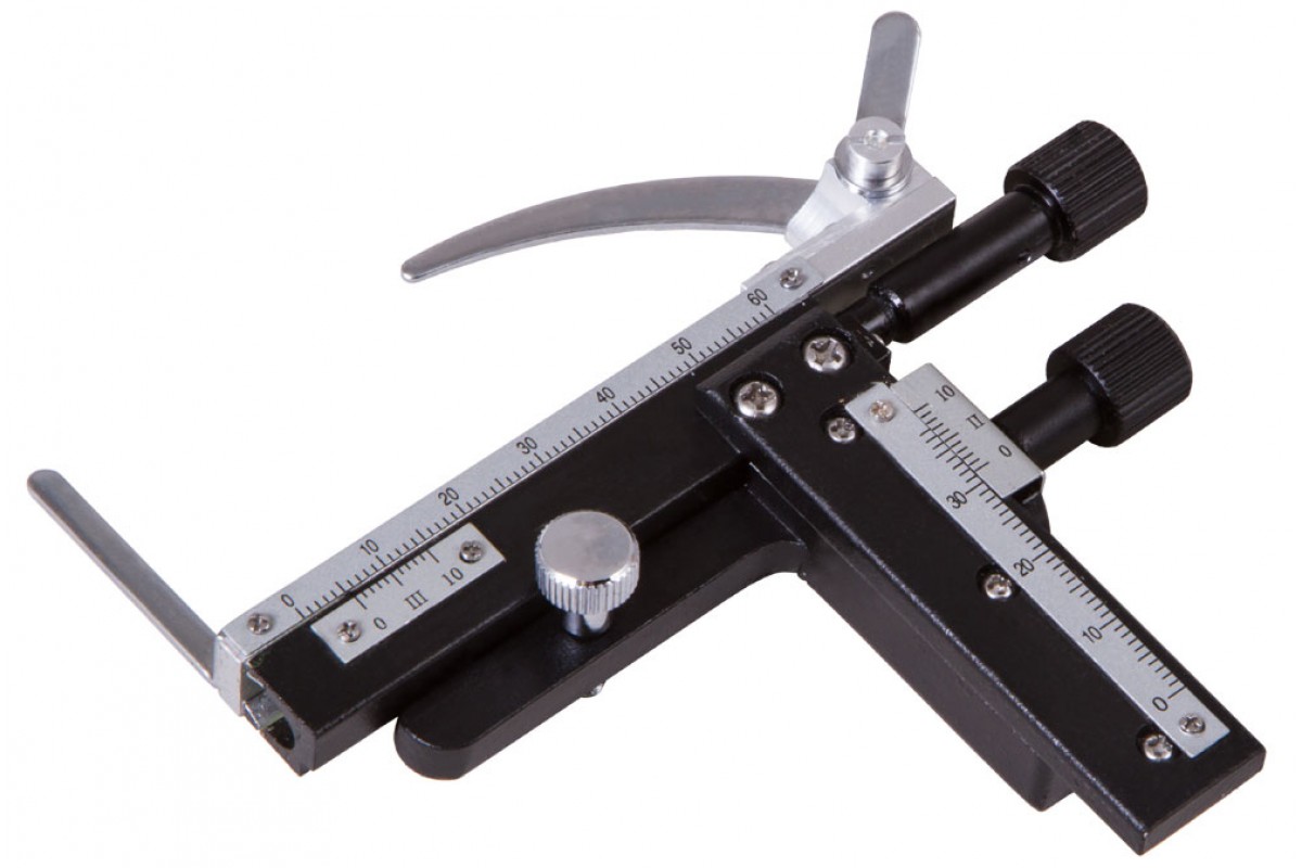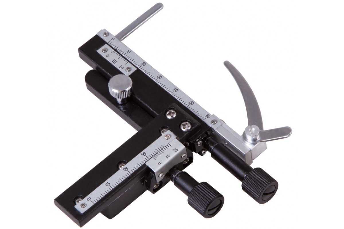 Препаратоводитель Levenhuk MS3 служит для перемещения микропрепаратов на предметном столике и точного определения координат их расположения. Перемещать препараты можно в двух направлениях – по оси Y (вперед-назад) и по оси X (вправо-влево). Координаты фиксируются при помощи двух основных измерительных шкал и вспомогательных шкал-нониусов.