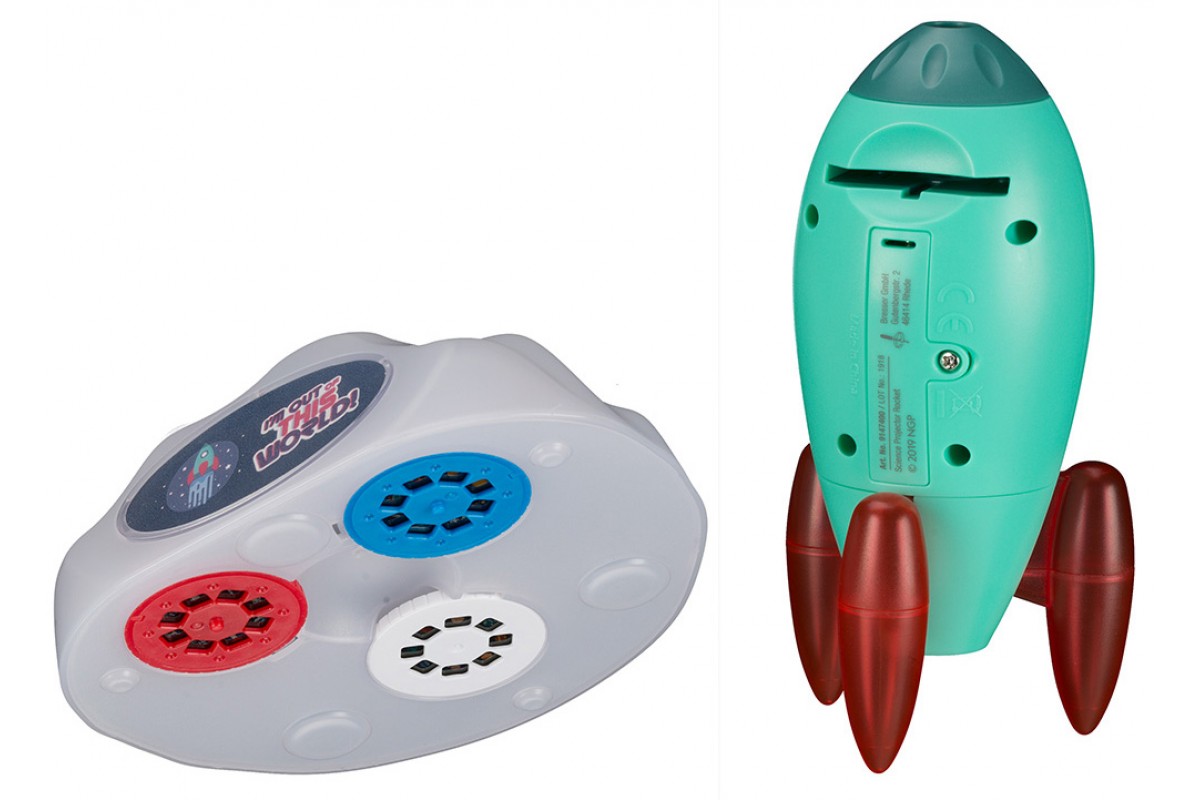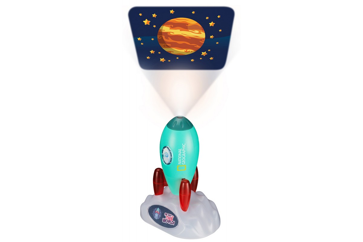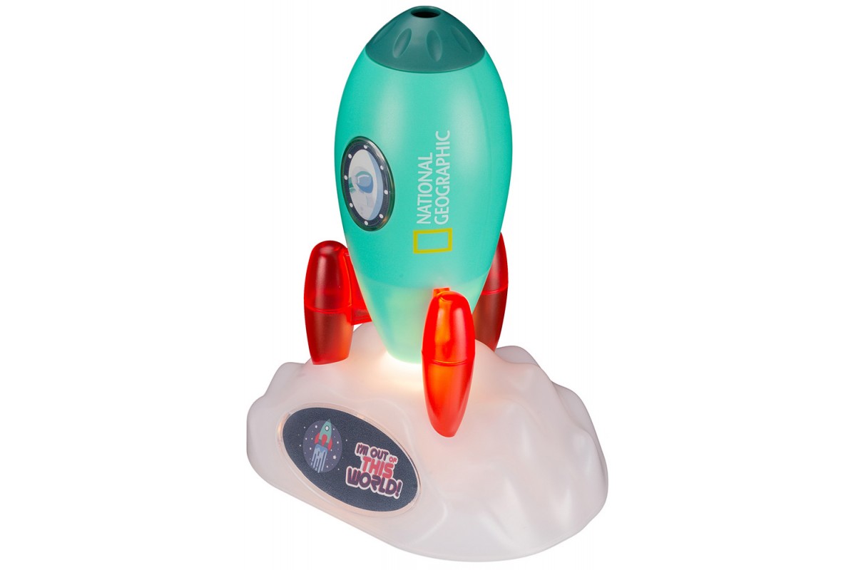 Проектор-ночник Bresser National Geographic «Космическая ракета» – это и украшение интерьера, и ночник для детской комнаты, и проектор для рассматривания красочных космических картинок. Прибор выполнен в виде ракеты, окрашенной в яркие цвета, и подставки в форме облака. Подставка съемная, т. е. ночник можно использовать и как переносной фонарик.