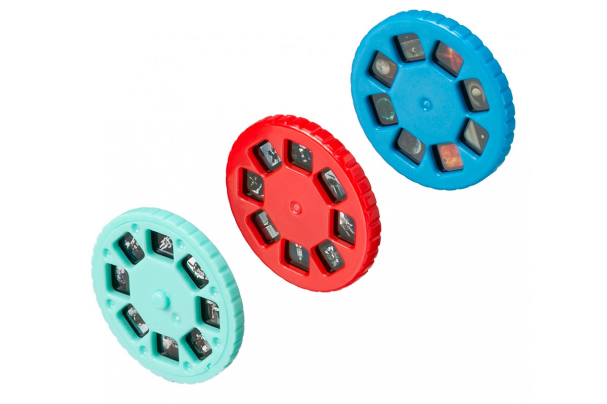 В режиме проектора прибор создает проекцию на потолок или стену. Для этого используются специальные диски со слайдами (в комплекте из 3, всего для изучения доступно 24 изображения). Все слайды посвящены космосу и астрономии, на них показаны планеты, галактики, космические аппараты и многое другое.