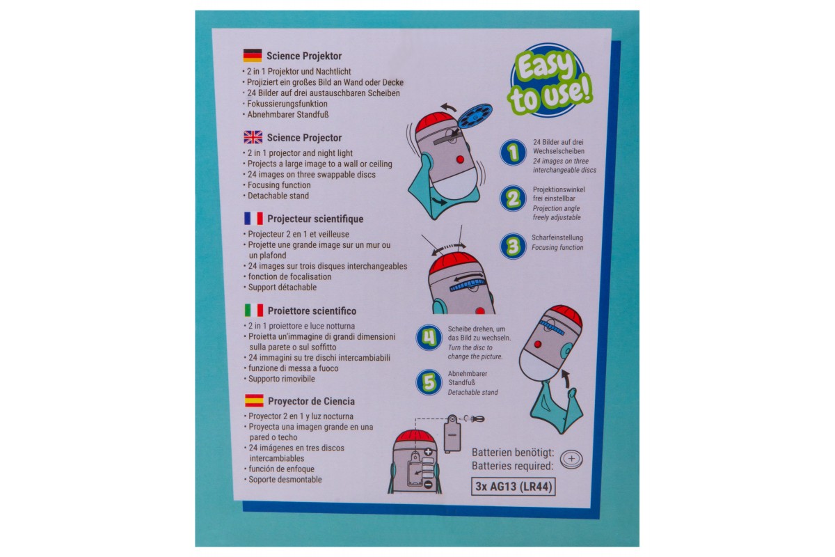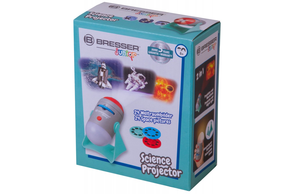 Проектор-ночник Bresser Junior поможет ребенку и в учебе, и в отдыхе. Это набор «2 в 1»: проектор для изучения обучающих слайдов и лампа-ночник для создания уютной атмосферы в комнате. Прибором легко пользоваться, помощь взрослых необязательна.