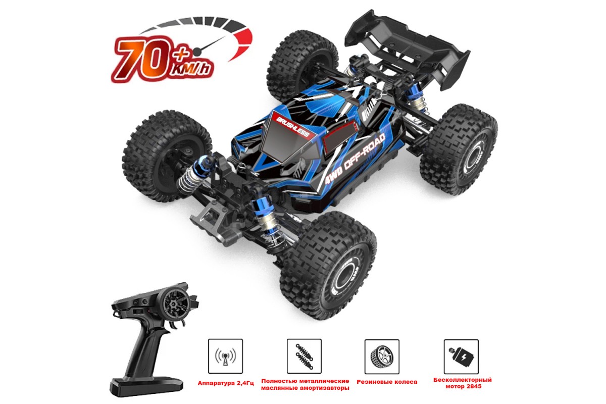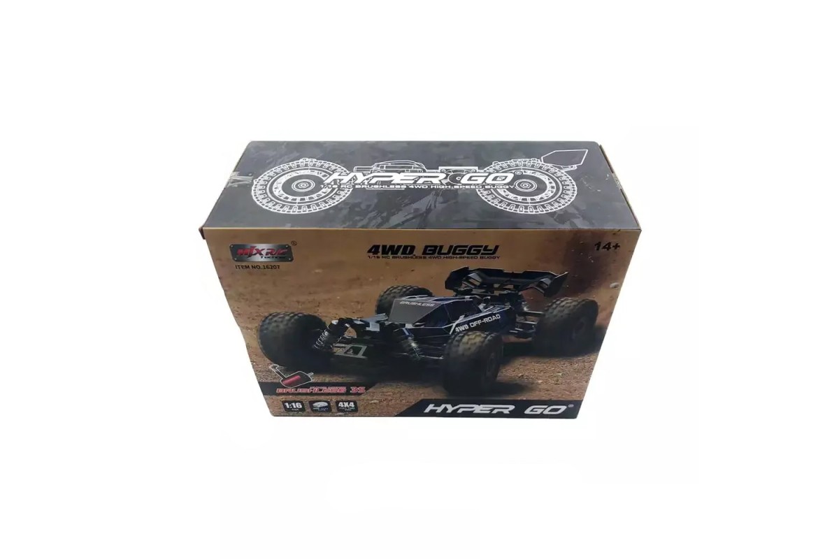 Радиоуправляемая багги MJX Hyper Go 4WD Brushless Buggy 1:16 - MJX-16207 - это новая модель с бесколлекторным двигателем от популярного производителя MJX. Автомобиль выполнен в масштабе 1:16 и отличается от конкурентов наличием интеллектуальной аккумуляторной батареи, системой охлаждения двигателя, а также оптимальным соотношением цены и качества деталей.