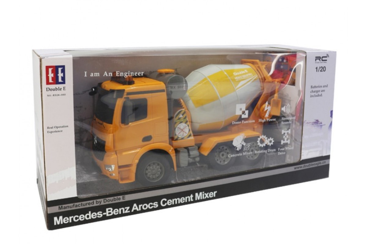 Радиоуправляемая бетомешалка Double E Mercedes-Benz Arocs 1:20 2.4G - E528-003 – это мобильная оригинальная модель бетоновоза. Пульт дистанционного управления позволяет совершать маневренные движения в разных направлениях. Бетоновоз движется вперед, назад, его можно повернуть в правую и левую стороны.