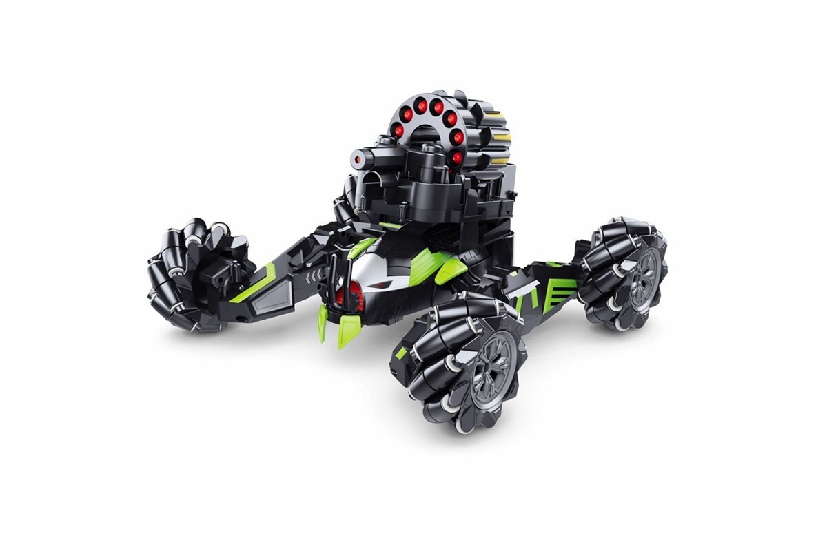 Пусковая установка управляется пультом дистанционного управления. Во время боя, Вы стреляете во врага и после трех попаданий он выйдет из строя (потребуется перезапуск). Также у Вас есть возможность отрегулировать высоту пушки, что поможет точно поразить цель. Особая конструкция колес позволяет двигаться во всех направлениях и делать повороты на 360°. Светодиодные индикаторы фар вовремя проинформируют Вас о том сколько жизней у Вас осталось. Модель оснащена амортизаторами, которые сглаживают неровности, позволяя вам мягко и непринужденно двигаться практически по любой поверхности.