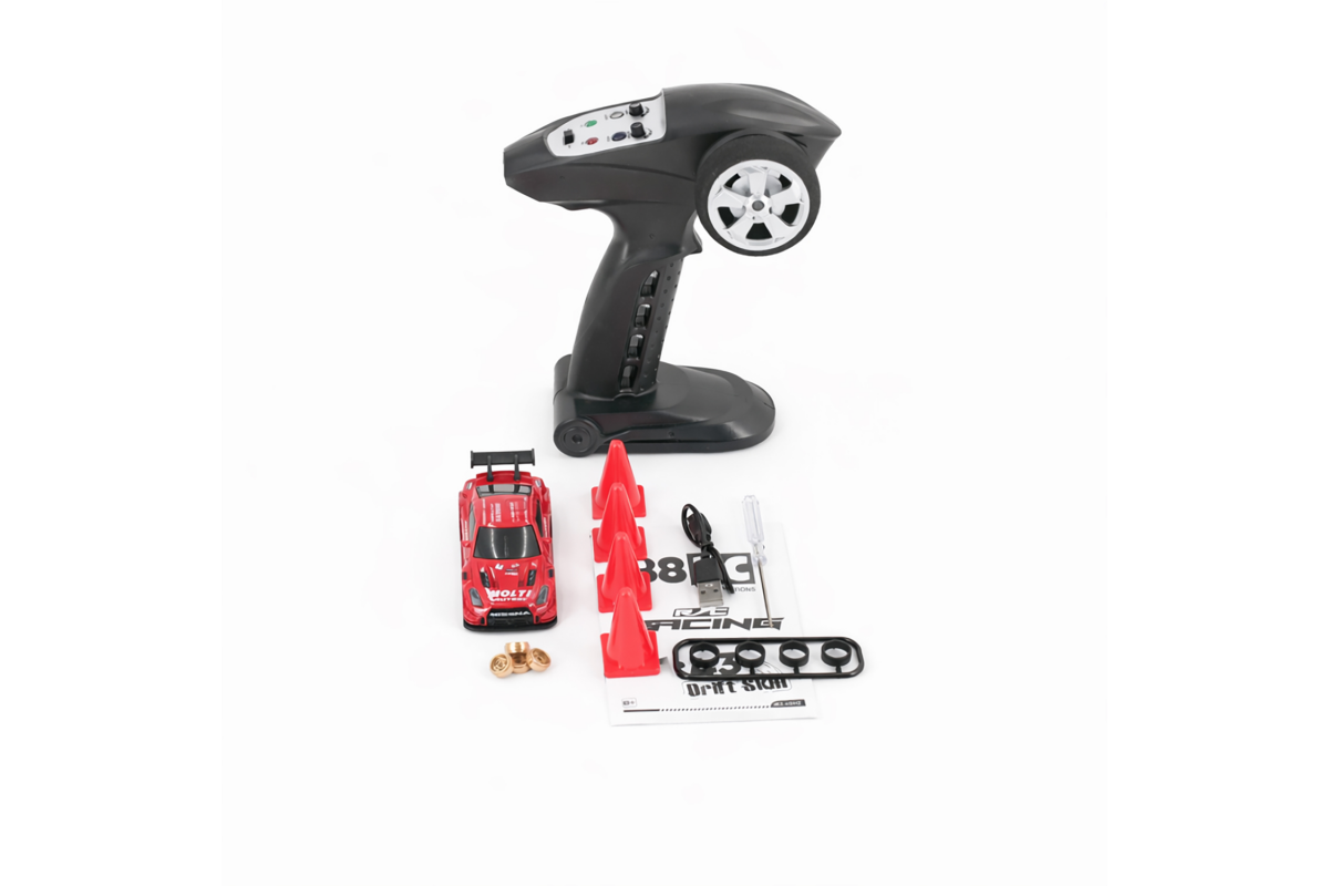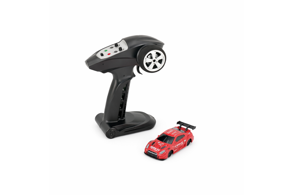 Радиоуправляемая дрифт машина с гироскопом Nissan GTR 1:43 - RC43-G2-RED - это машина, которая предназначена для дрифта. Она имеет полный привод и выполненная в масштабе 1:43. Машинка управляется при помощи пульта ДУ, работающего на частоте 2,4 ГГц. В наборе также поставляются комплект запасных колес, дорожные конусы, зарядное устройство и аккумулятор. Во время движения у машинки светятся фары.