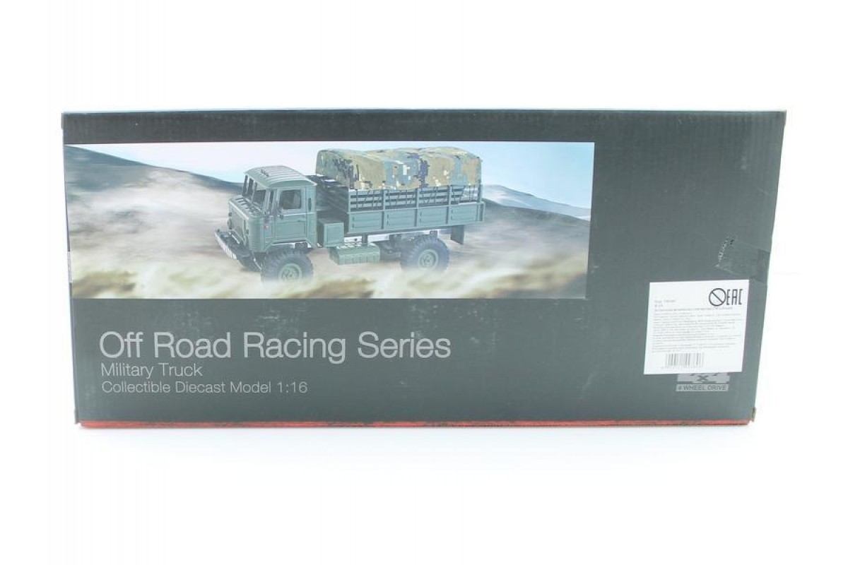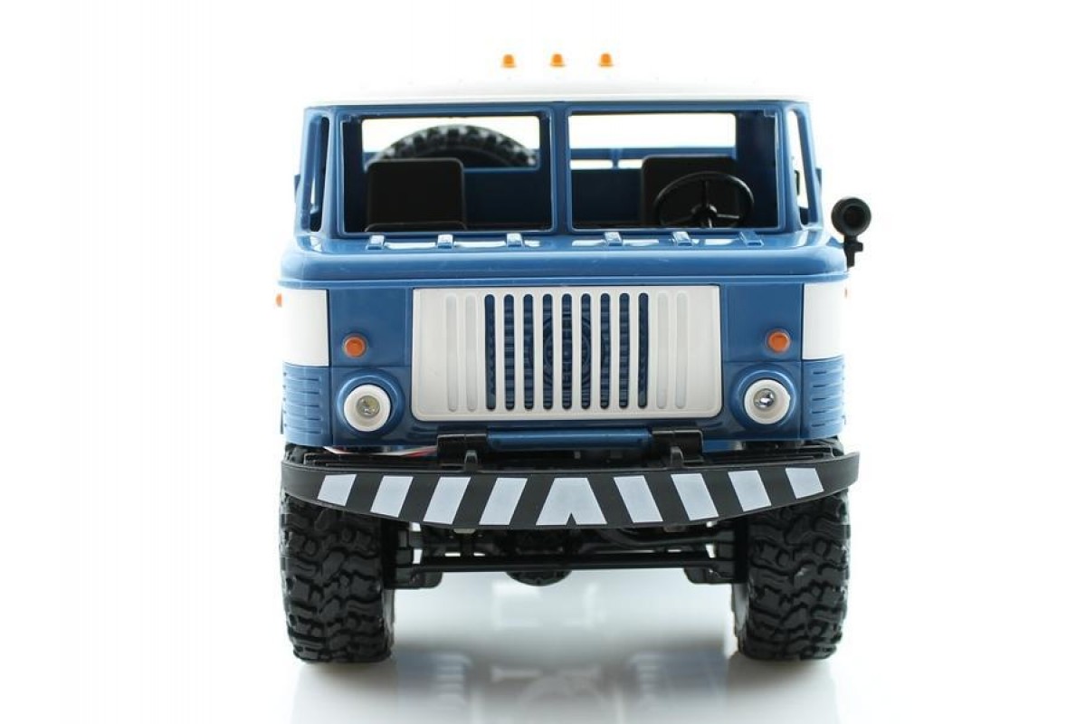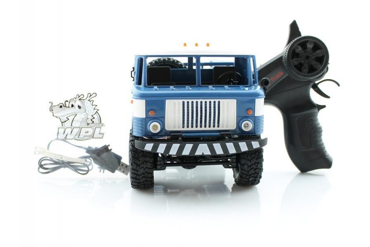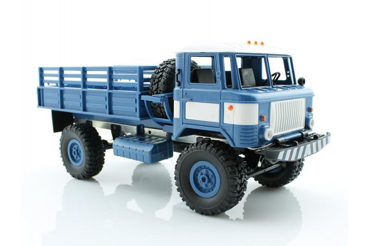 Радиоуправляемая грузовая машина WPL Газ 66 Синий 1:16 - WPLB-24 - это полностью готовая модель военного грузовика масштаба 1:16 с постоянным полным приводом, коллекторным электромотором, пультом управления 2.4GHz, Li-Ion аккумулятором и USB зарядным устройством. Мощная полноприводная система и усиленное пластиковое шасси позволяют подниматься по крутым склонам с груженным кузовом и легко ездить по неровным дорогам. В ночное время включите свет и продолжайте управлять грузовиком.