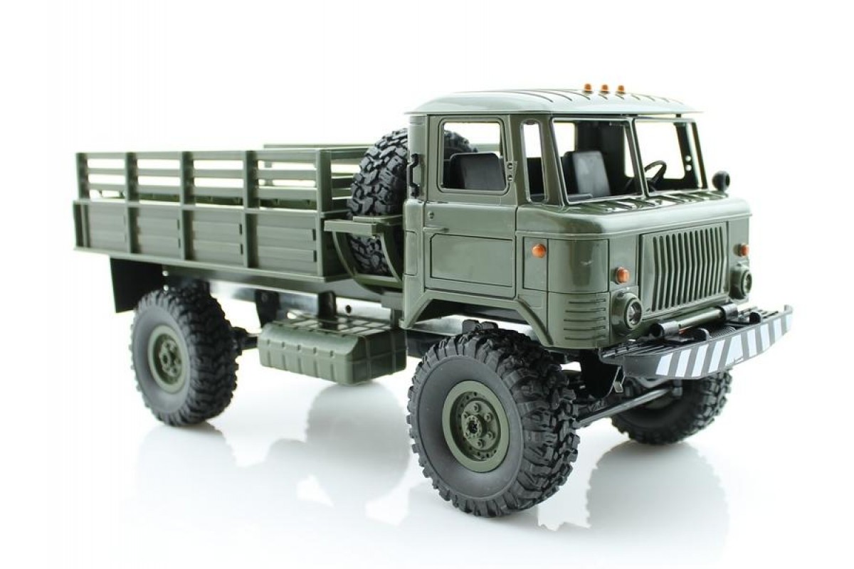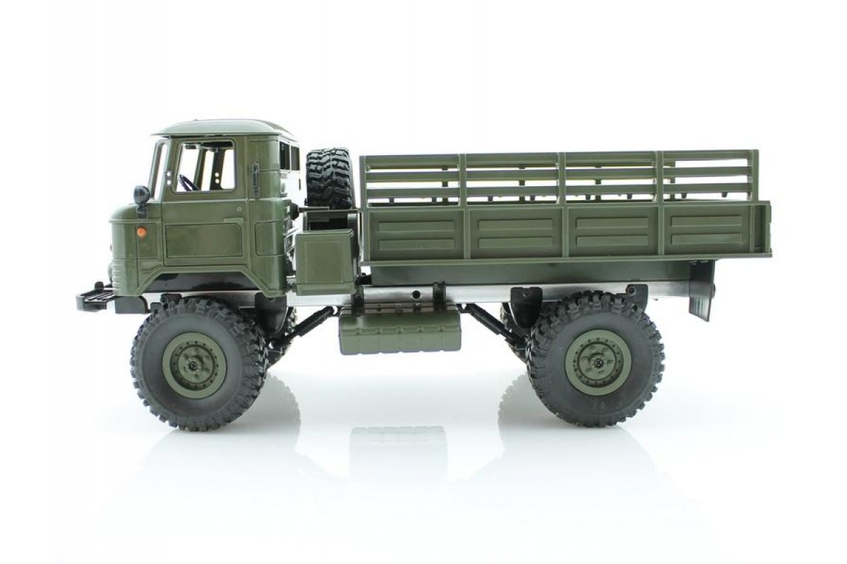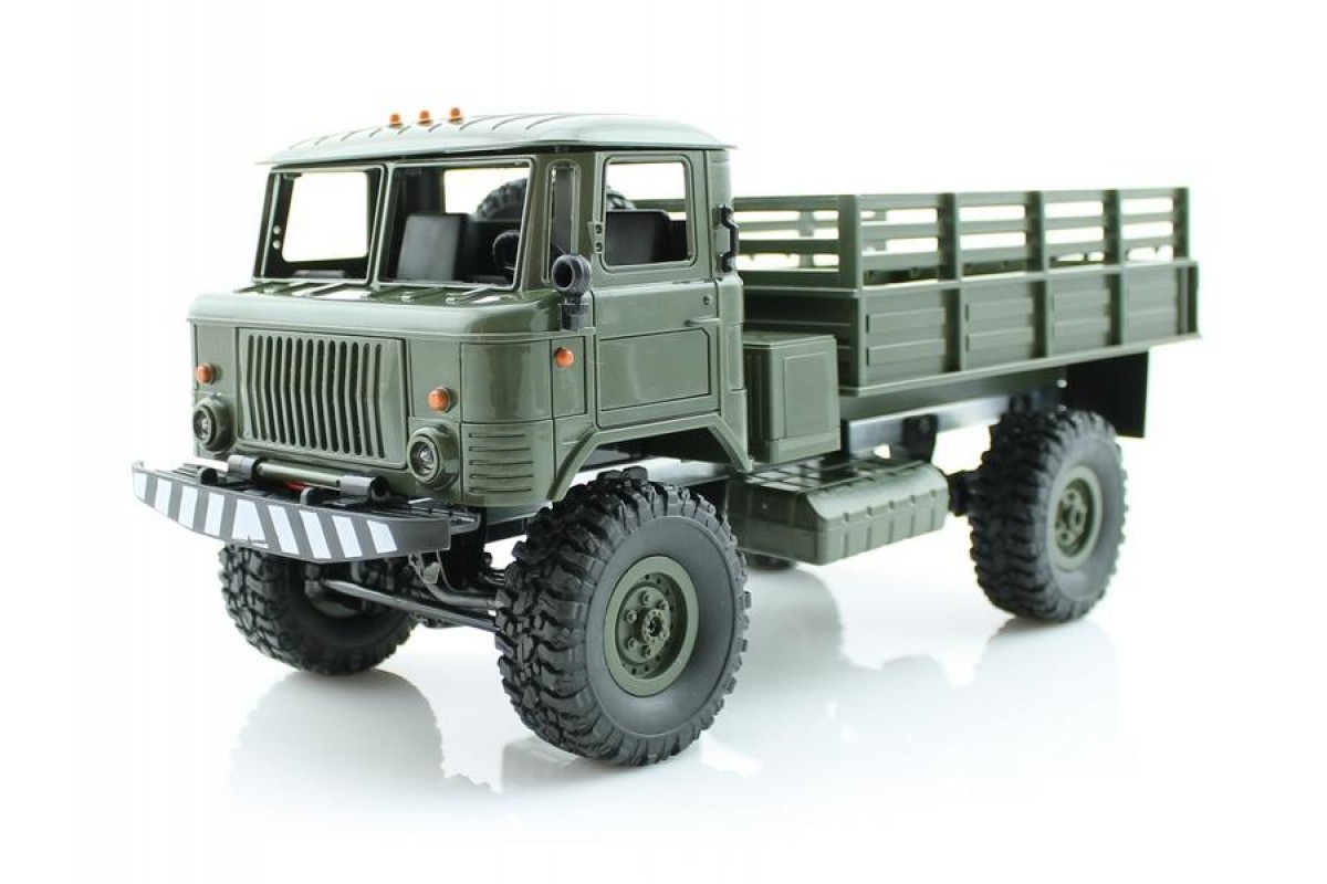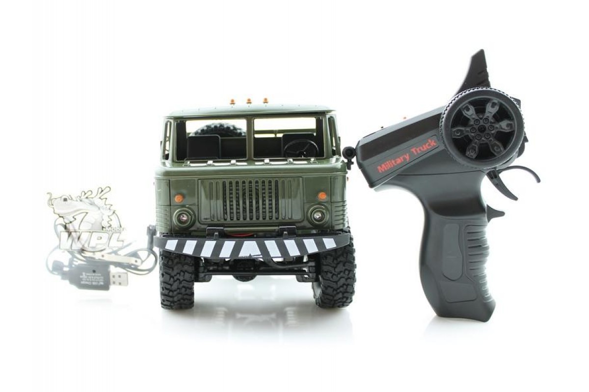 Радиоуправляемая грузовая машина WPL Газ 66 Зеленый 1:16 - WPLB-24 Upgrade - это полностью готовая модель военного грузовика масштаба 1:16 с постоянным полным приводом, коллекторным электромотором, пультом управления 2.4GHz, Li-Ion аккумулятором и USB зарядным устройством. Мощная полноприводная система и усиленное пластиковое шасси позволяют подниматься по крутым склонам с груженным кузовом и легко ездить по неровным дорогам. В ночное время включите свет и продолжайте управлять грузовиком.