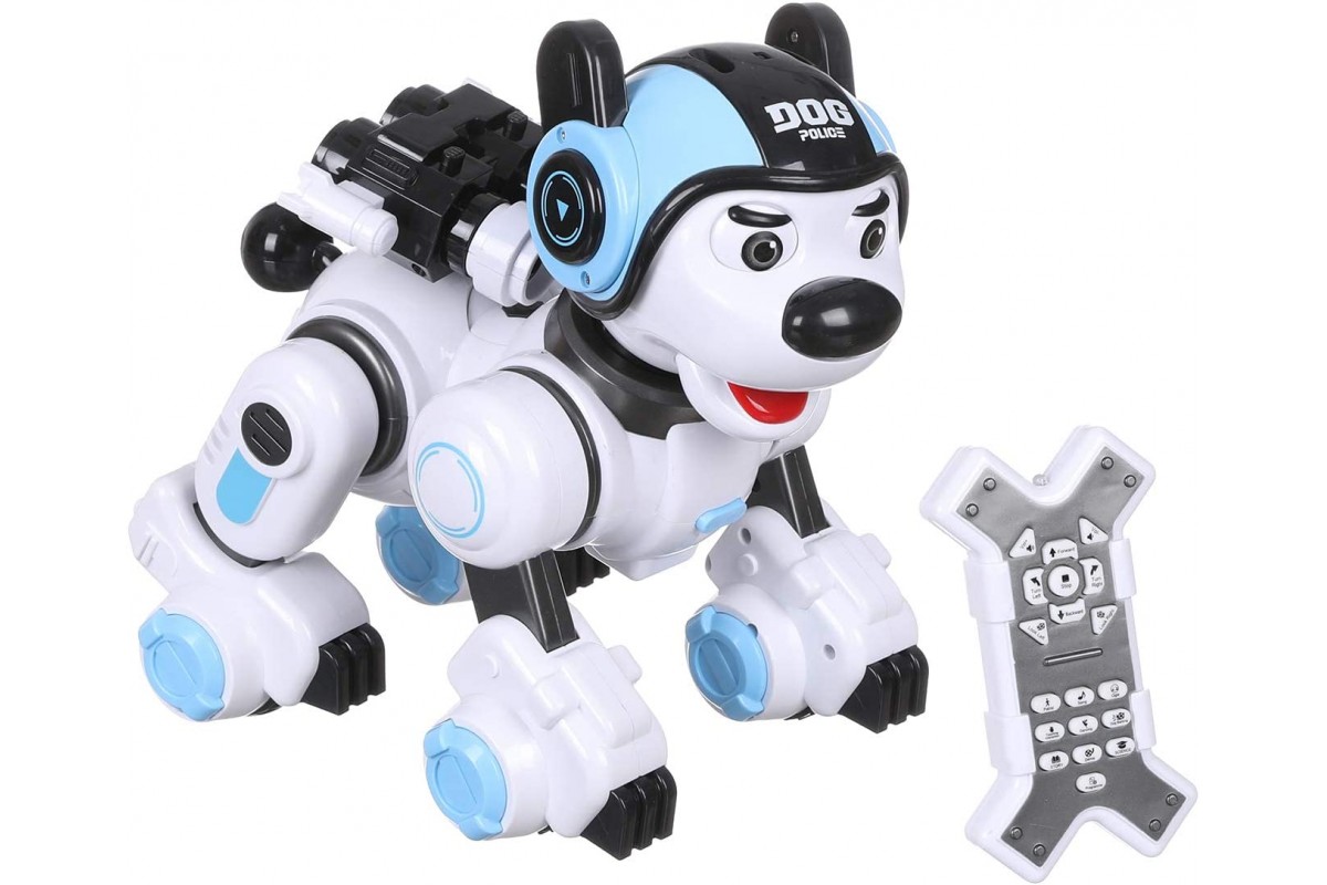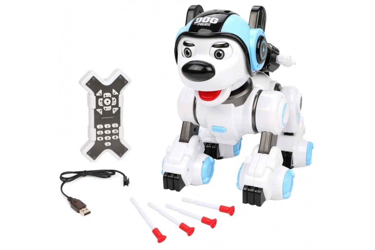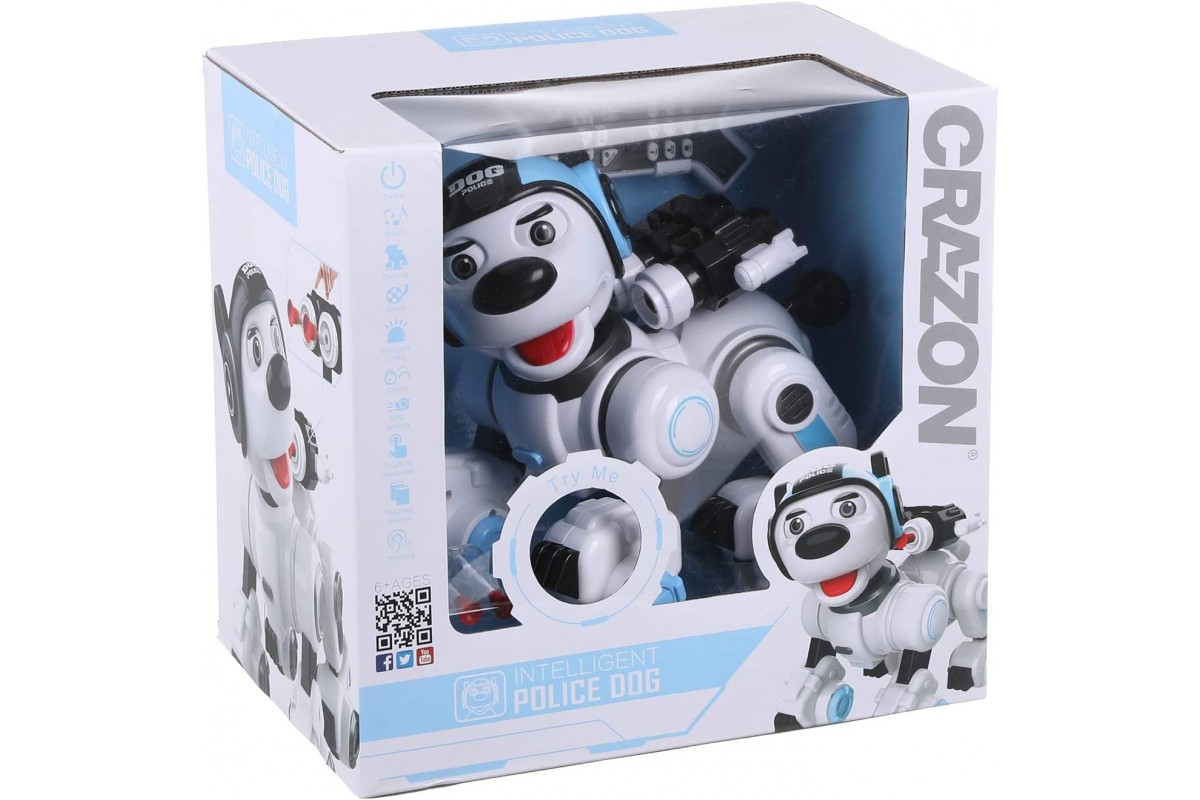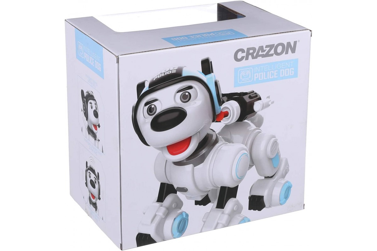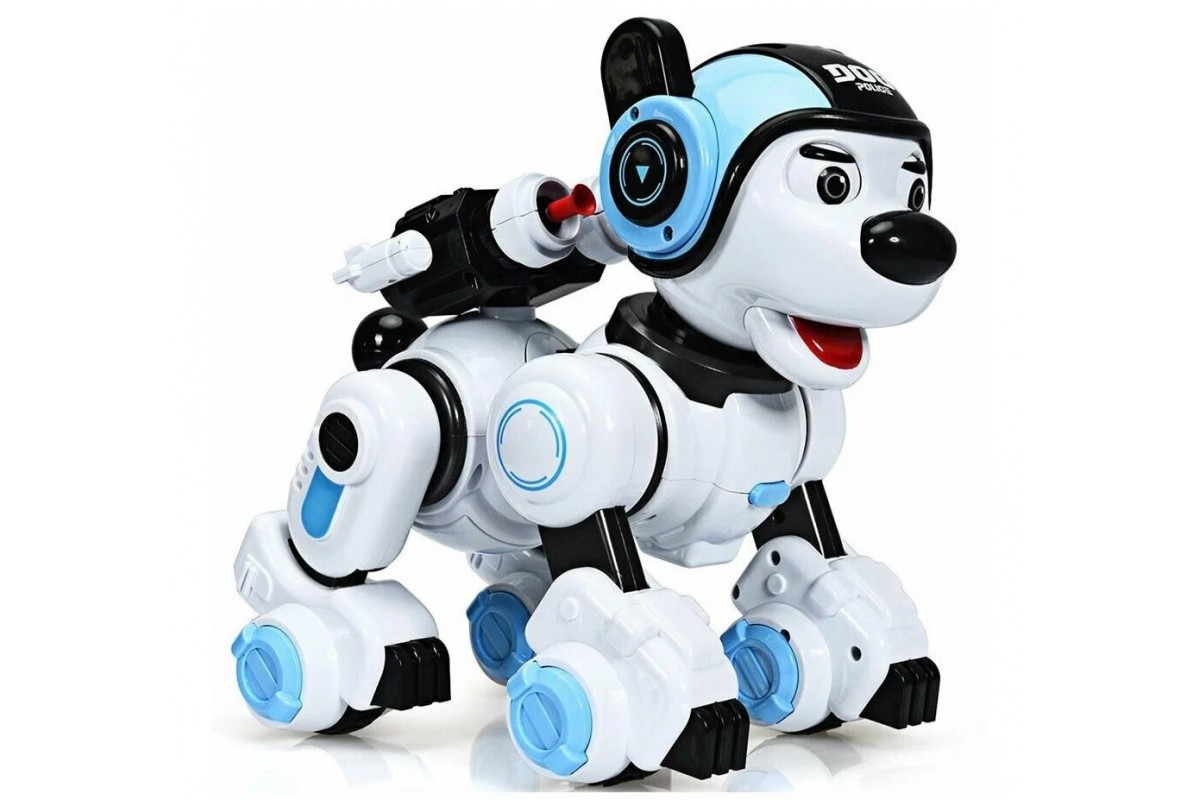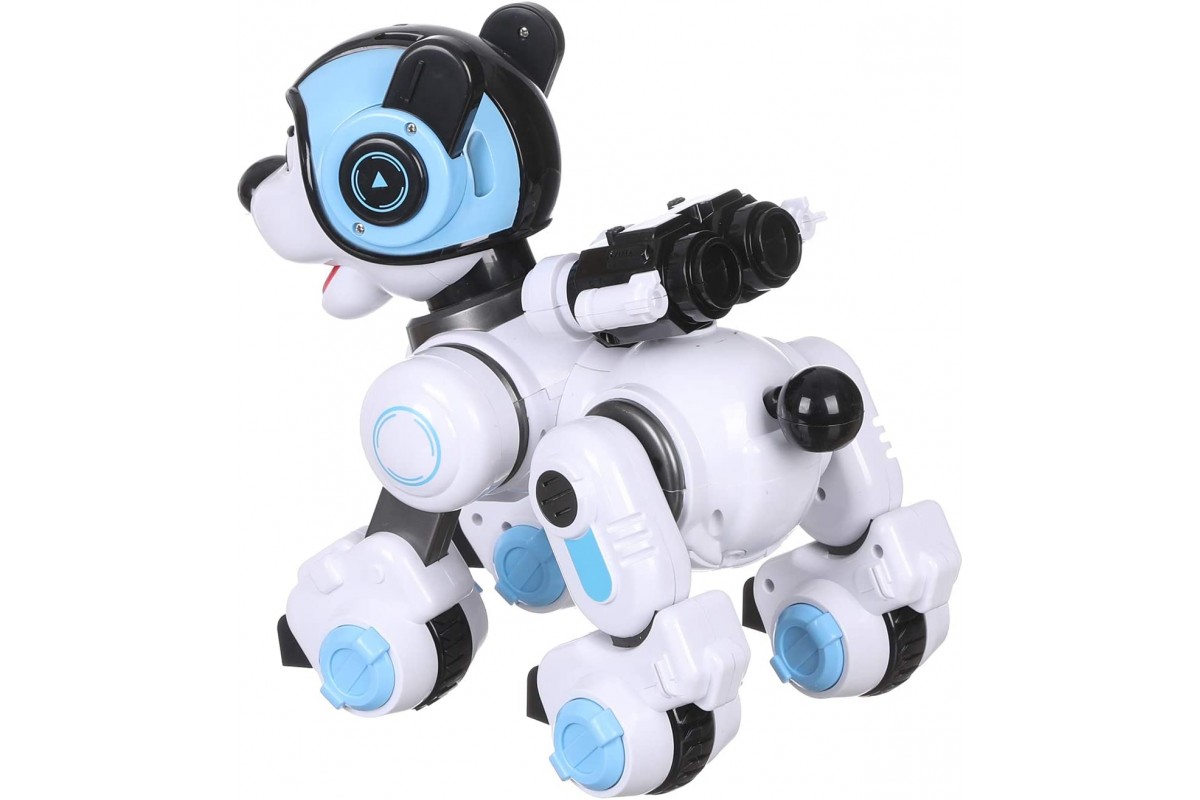 Радиоуправляемая интеллектуальная собака-робот Crazon 1901 BLUE (ИК-управление) - CR-1901-BLUE имеет также сенсорное управление, ездит, танцует, есть музыка, звук (англ) и световые эффекты, стреляет пулями, также ее можно запрограммировать.