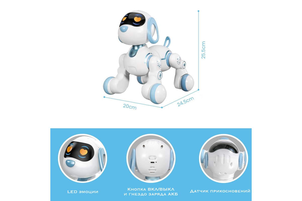 Радиоуправляемая интерактивная собака Акробат - AW-6601 - это интерактивный умный щенок, который станет лучшим домашним питомцем для ребенка. Множество функций собачки подарят ребенку много интересных часов игры и научит его ответственности за братьев наших меньших. Песик способен выполнять различные функции. Движение вперед/назад, сенсорный датчик, акробатические трюки. Работает от дистанционного пульта управления. Умеет танцевать и петь песни. Собачка может быть запрограммирована на выполнение определенных действий, стимулирующих творческий потенциал детей и тренирующих их способности. Сенсорные датчики распознают прикосновение к голове собаки.
