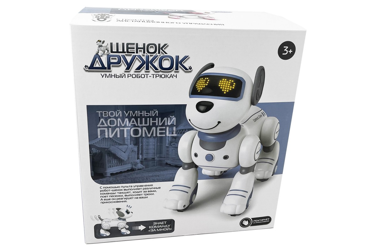Собака робот Щенок ''Дружок'' обладает изысканным мастерством, отличным внешним видом и идеальным качеством имеет множество функций, таких как программирование, сенсорное и голосовое управление, следуй за мной, танцы с музыкой и так далее.