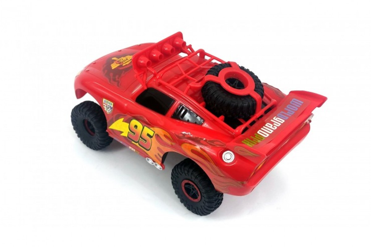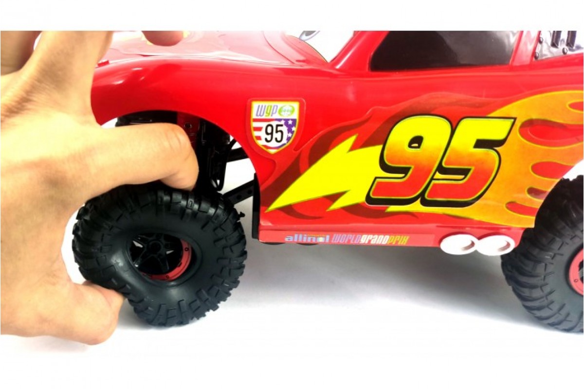 Представляем вашему вниманию полноприводный краулер по мотивам мультика Тачки. Игрушка работает от пульта дистанционного управления, предназначена для сюжетно-ролевых игр, способствует развитию воображения, познавательного мышления и моторики. Из преимуществ стоит отметить мощные амортизаторы, большие мягкие шины и высокая скорость машинки.