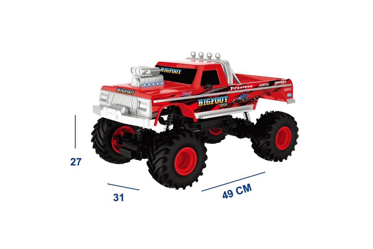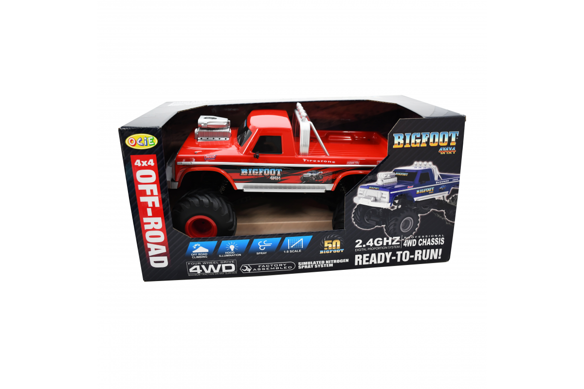 Радиоуправляемая машина BIGFOOT с паром 4WD 1:8 - OC-0802 - это джип больших размеров по лицензии компании BIGFOOT - монстр-трак на огромных колесах, которые участвуют в шоу и гонках, способных давить легковые автомобили. Игрушка на радиоуправлении имеет полу-пропорциональное управление, большие внедорожные шины,может ездить вперед, назад, влево, вправо. Простота управления подойдет любому ребенку. В комплекте есть все что необходимо для езды!