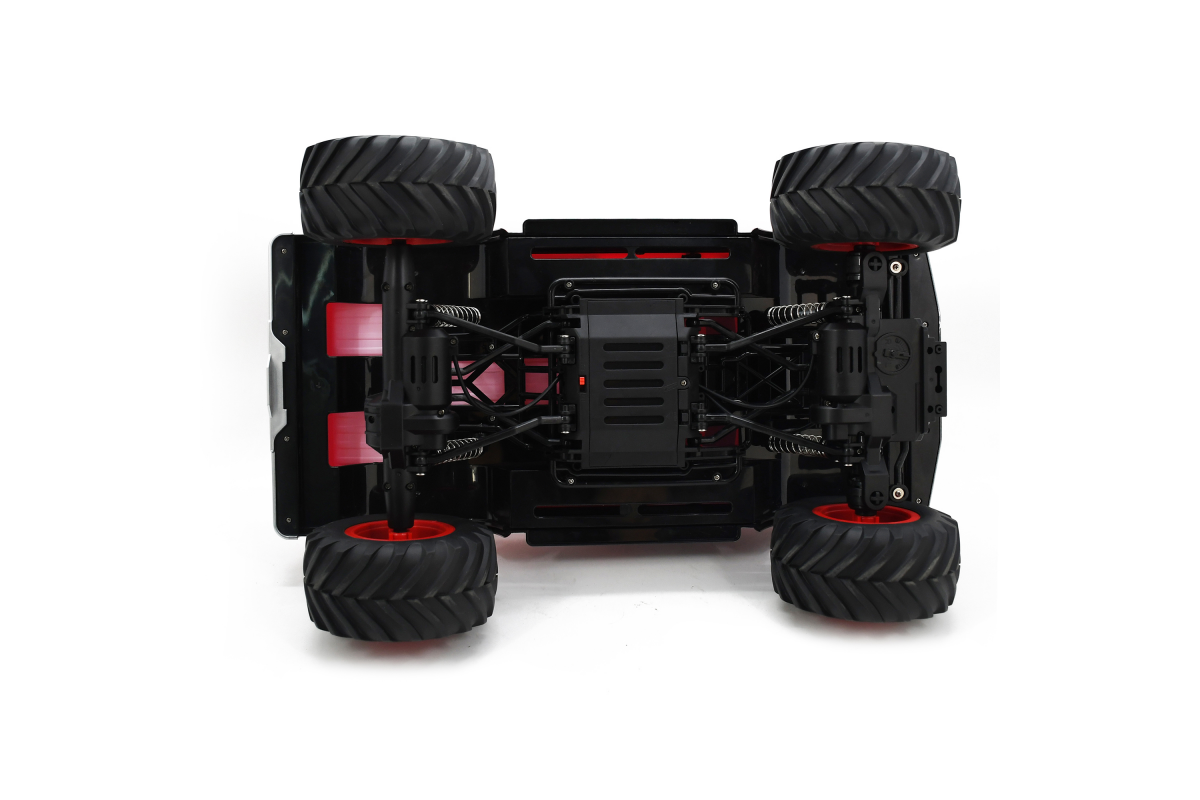 Радиоуправляемый гоночный джип отличается очень интересным дизайном – в виде крутого монстр-трака. Предназначен для гонок как на ровных поверхностях, так и по бездорожью. 4 огромных резиновых колеса с глубокими протекторами предают данной модели устойчивость на дорогах и полный контроль. На капоте установлен двигатель с яркой подсветкой и функцией пара - имитации работы мотора.
